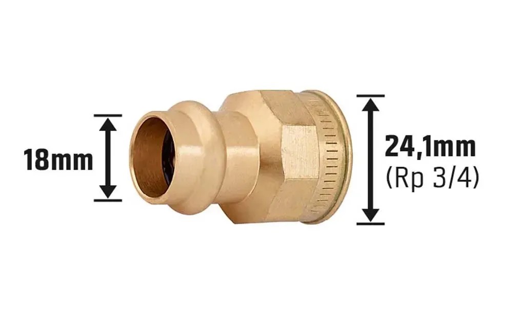 Robustní přechodový nátrubek slouží ke spojení trubek při instalaci topení, vody nebo solárních zařízení a vyznačuje se jednoduchou a spolehlivou montáží. Fitink je vyroben ze stabilního červeného bronzu s vysokým podílem mědi. Je odolný vůči korozi z vnitřního pnutí a obzvláště odolný vůči opotřebení. Spojovací prvek má průběžný tvar pro přímý přechod trubek. Připevňuje se lisováním, při kterém vznikne trvalý spoj, který se neuvolní ani při tlakovém zatížení nebo změně teploty. Montáž je rychlá a bezproblémová. Lisovací spoj má průměr 18 mm x 24,1 mm (Rp 3/4) a hodí se ke spojení měděných trubek. Přechodový nátrubek se smí rovněž používat při instalaci pitné vody.