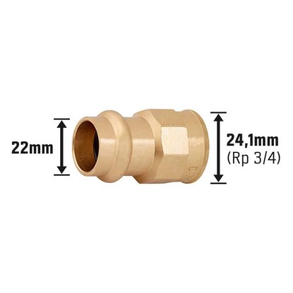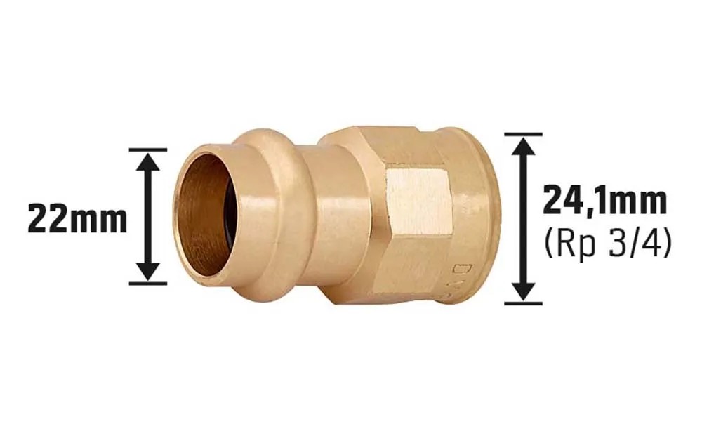 Robustní přechodový nátrubek slouží ke spojení trubek při instalaci topení, vody nebo solárních zařízení a vyznačuje se jednoduchou a spolehlivou montáží. Fitink je vyroben ze stabilního červeného bronzu s vysokým podílem mědi. Je odolný vůči korozi z vnitřního pnutí a obzvláště odolný vůči opotřebení. Spojovací prvek má průběžný tvar pro přímý přechod trubek. Připevňuje se lisováním, při kterém vznikne trvalý spoj, který se neuvolní ani při tlakovém zatížení nebo změně teploty. Montáž je rychlá a bezproblémová. Lisovací spoj má průměr 22 mm x 24,1 mm (Rp 3/4) a hodí se ke spojení měděných trubek. Přechodový nátrubek se smí rovněž používat při instalaci pitné vody.