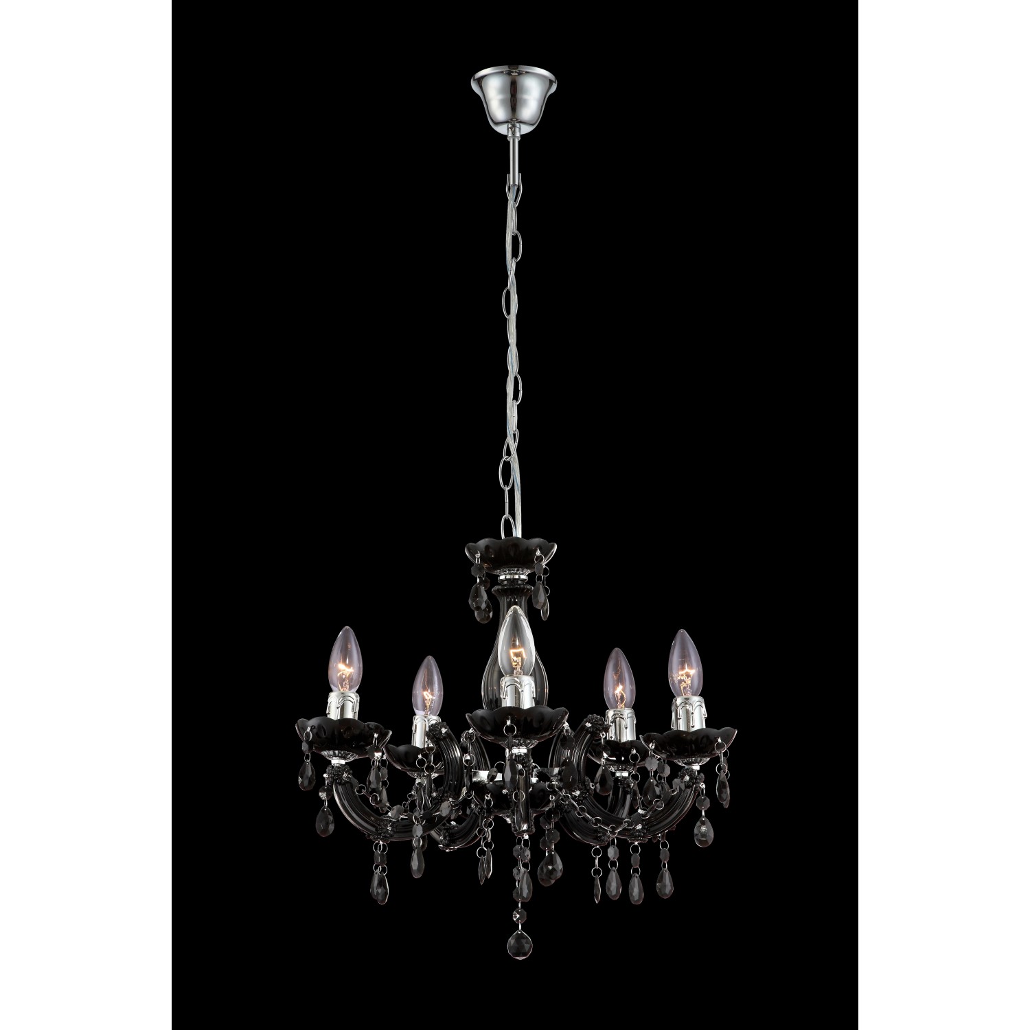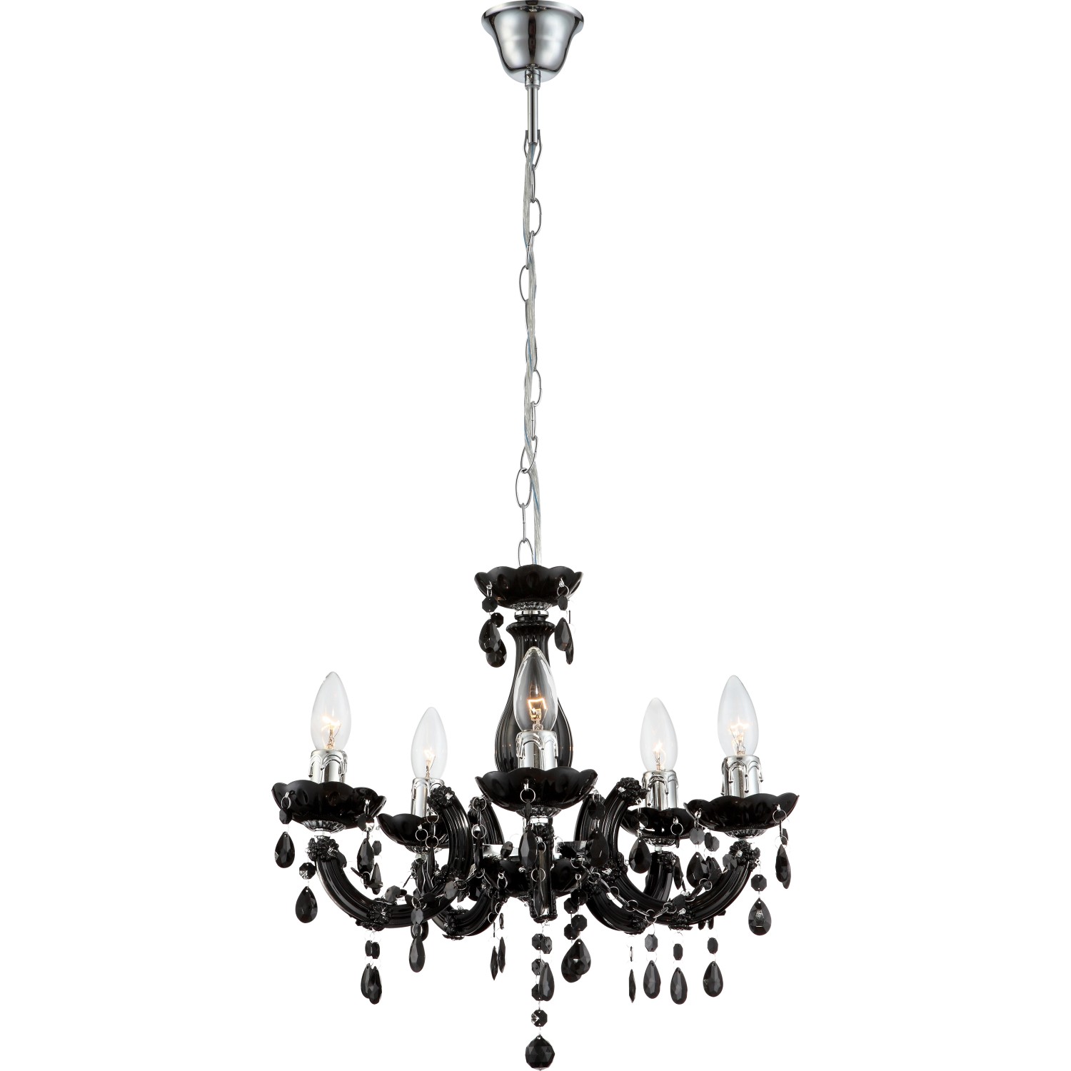 Klasický lustr Globo Cuimbra II je ozdoben kameny z akrylového skla, který poskytuje útulné světlo ve Vašem obývacím pokoji. Svítidlo je vybaveno pěti objímkami E14, každá pro příkon max. 40 W. Ať už použijete žárovky, úsporné žárovky nebo LED světelné zdroje, do objímky E14 lze namontovat vše.