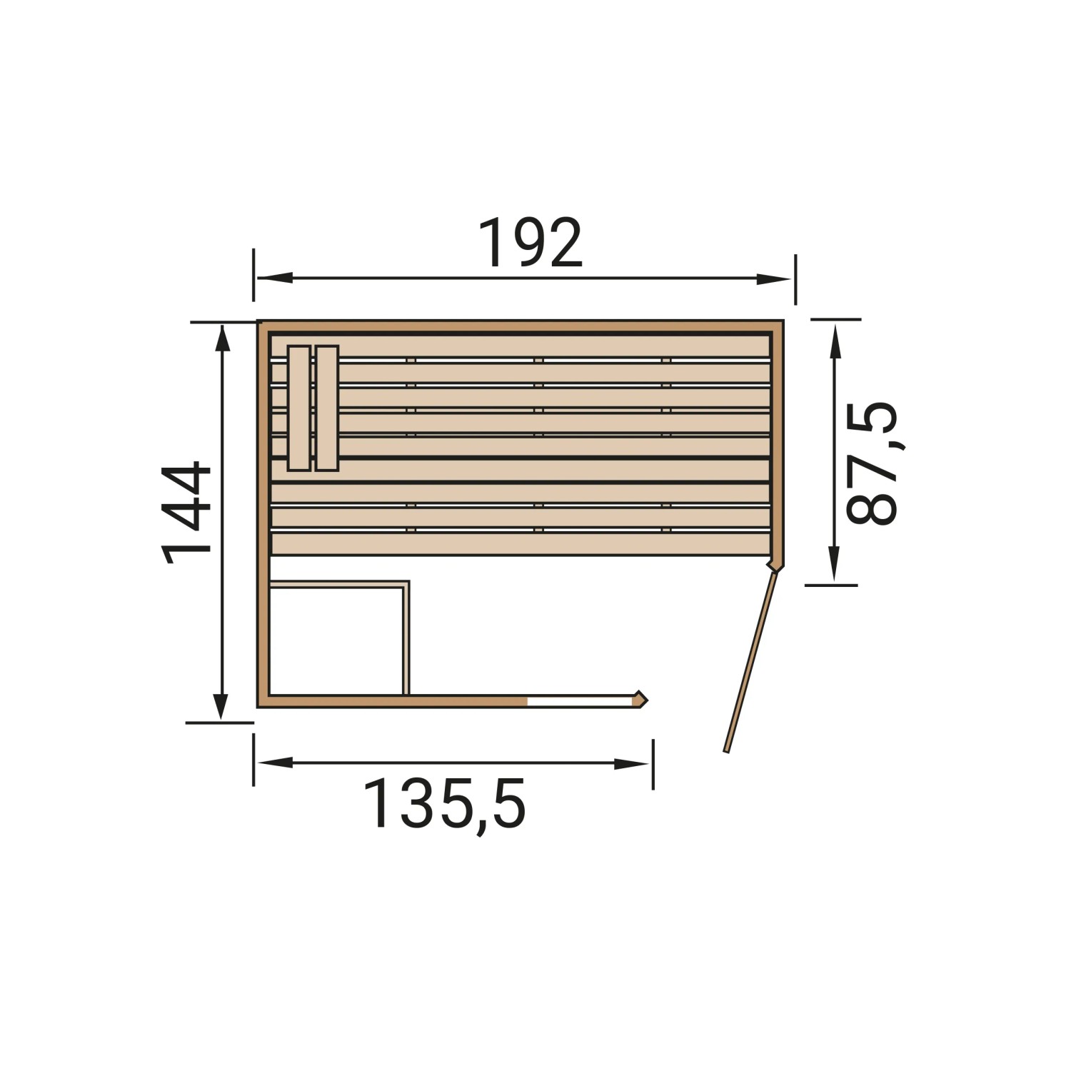 Sauna se skládá z 38 mm silných fošen pro příjemné klima a dlouhou životnost. Spojení dvojitých drážek a per zajišťuje nejvyšší možnou těsnost a tvarovou stabilitu. Správné světelné podmínky zajišťuje dřevěné stínítko, silikonový bezpečnostní kabel a keramická objímka.