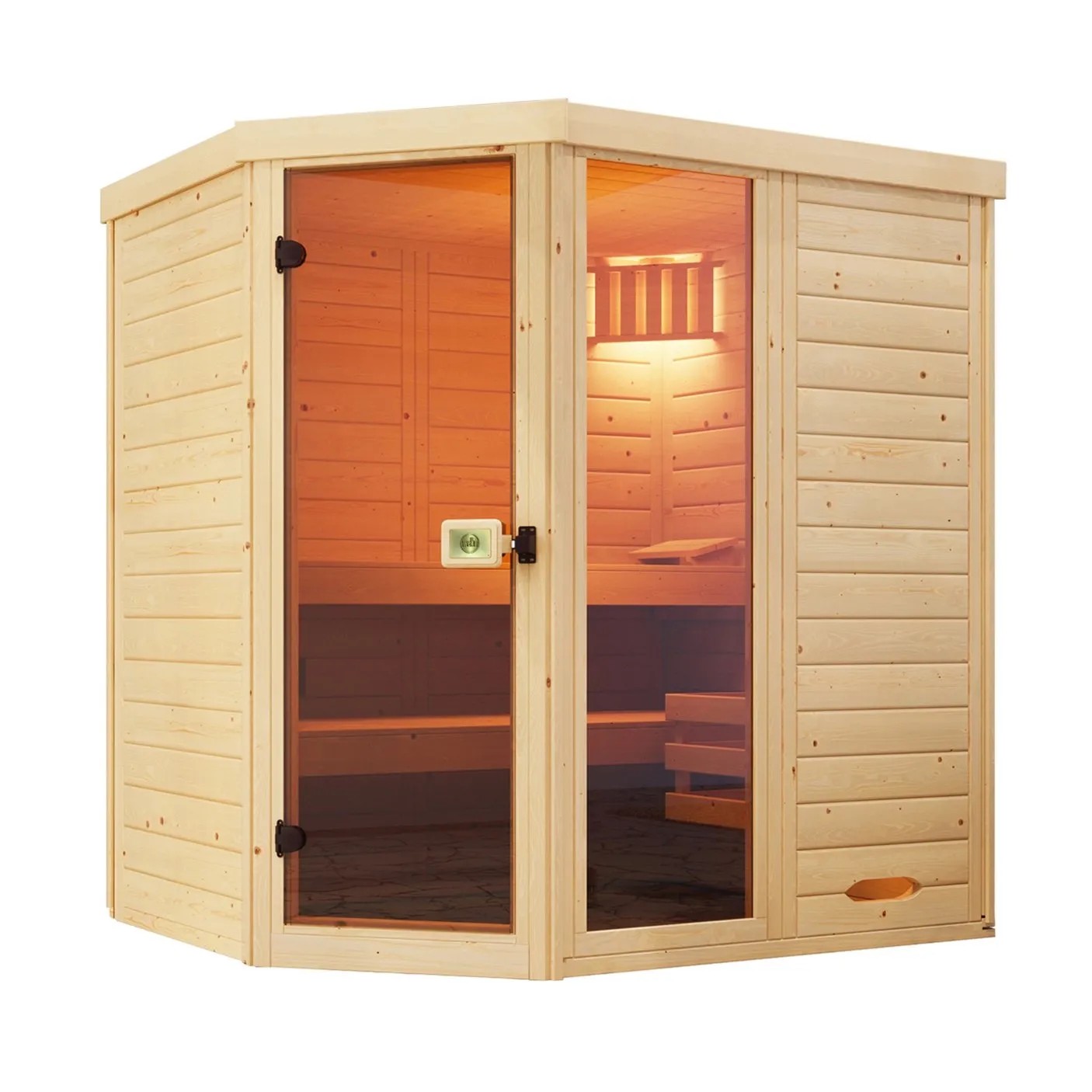 Weka Sauna 38 mm Laukkala 2 včetně sady svítidel do sauny a skleněných dveří