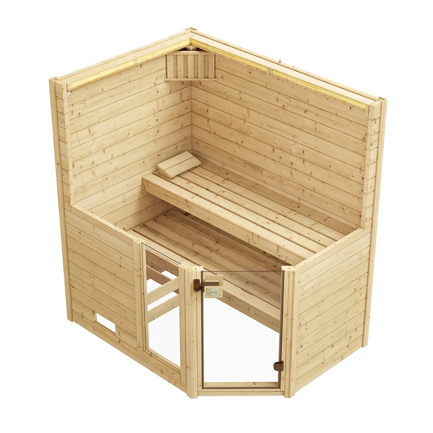 Weka Sauna z masivu 38 mm Valida rohová 1 se skleněnými dveřmi a okenním prvkem