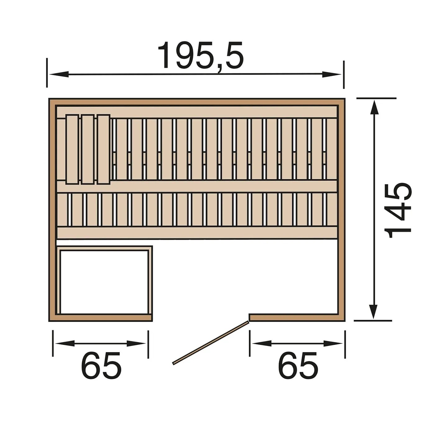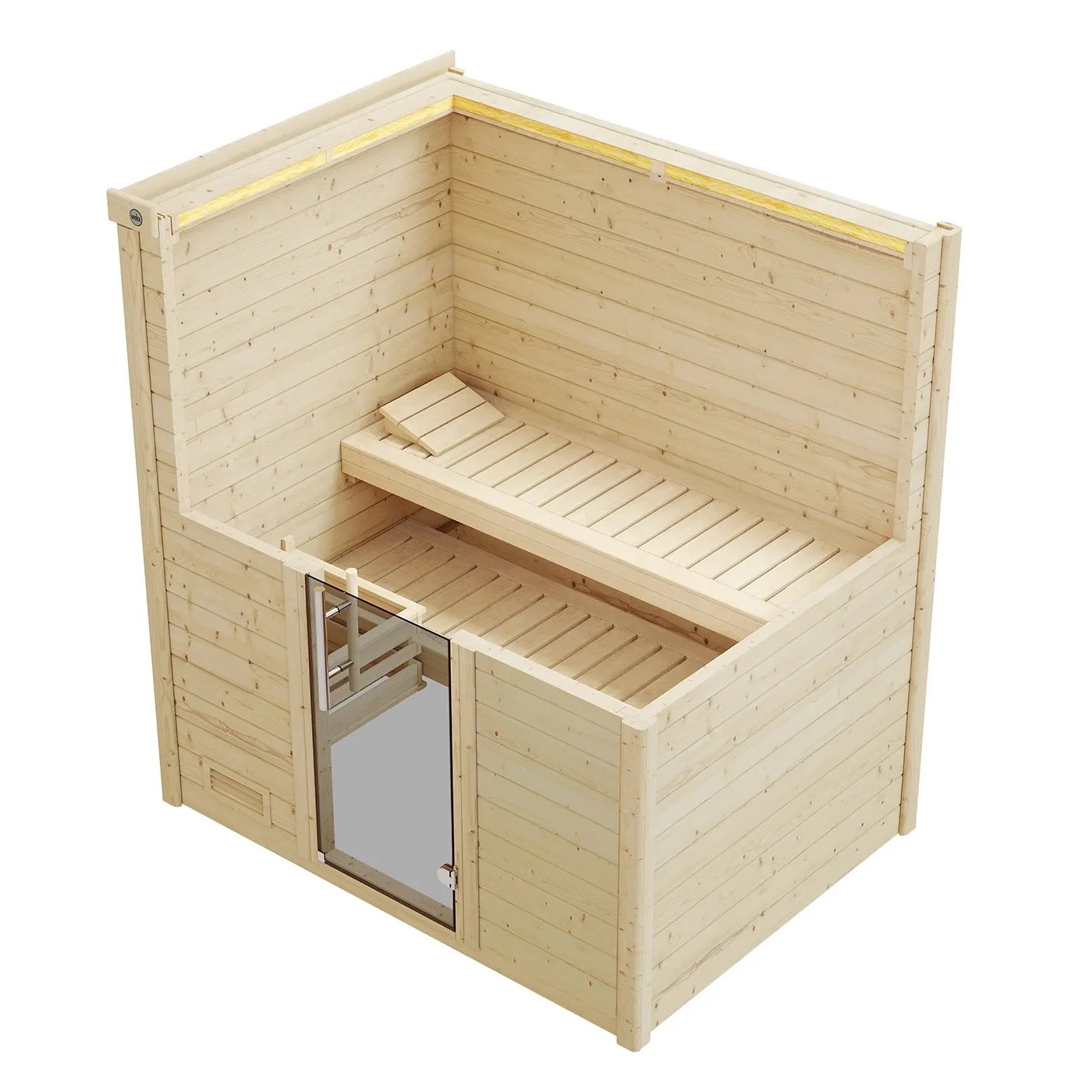 Masivní sauna se stěnami o tloušťce 45 mm pro optimální klima v sauně. Vysoce kvalitně zpracované součásti zaručují funkčnost a stabilitu.
