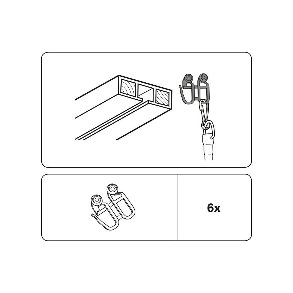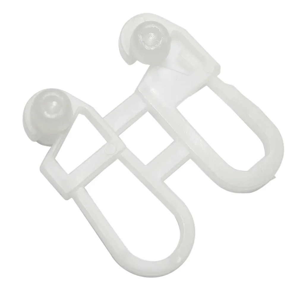 Gardinia háčky s jezdcem pro ovládací tyčku jsou vyrobeny z bílého plastu a jsou vhodné k připevnění ovládací tyčky na záclony ke kolejničce.