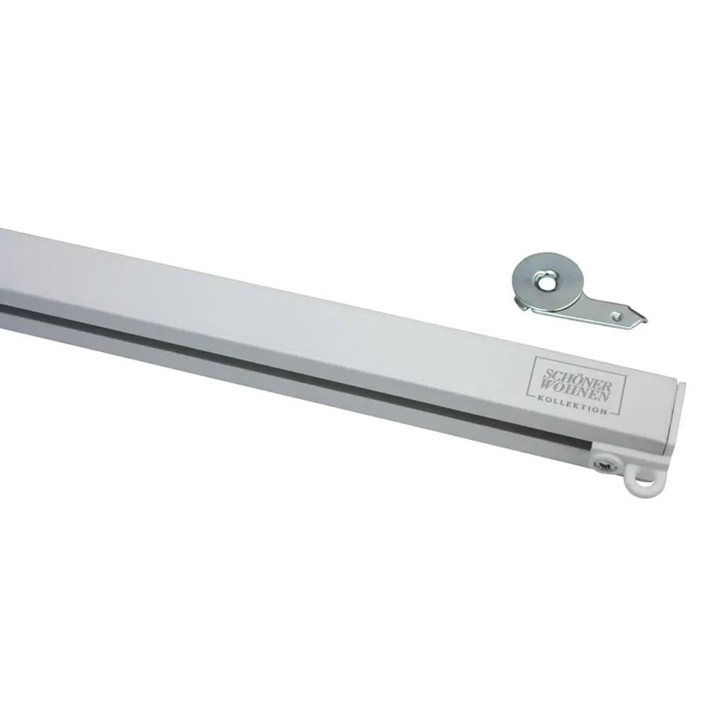Záclonová souprava Schöner Wohnen Emilia zaujme svým moderním vzhledem a vysokou funkčností. Záclonová tyč je vyrobena z lakovaného hliníku a doplněna o kovové a plastové doplňky. Záclonová tyč má rozměr (v x h) 22 x 17 mm a je opatřena 6 mm drážkou. Součástí balení je 1 x záclonová tyč, 2 x koncovka, 2 x stropní držák a upevňovací materiál. Samostatně je pro tuto série možné zakoupit další příslušenství.