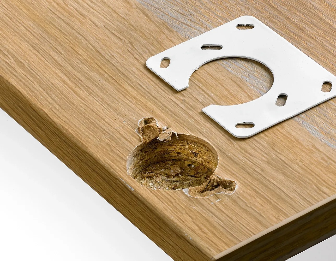 Opravná destička Hettich nabízí řešení, pokud již závěs nedrží na místě kvůli opotřebovaným šroubům. Je speciálně určený pro skryté panty s průměrem misky 35 mm a lze jej použít pro všechny skryté panty s tímto průměrem a s roztečí montážních otvorů 52 mm a 48 mm.