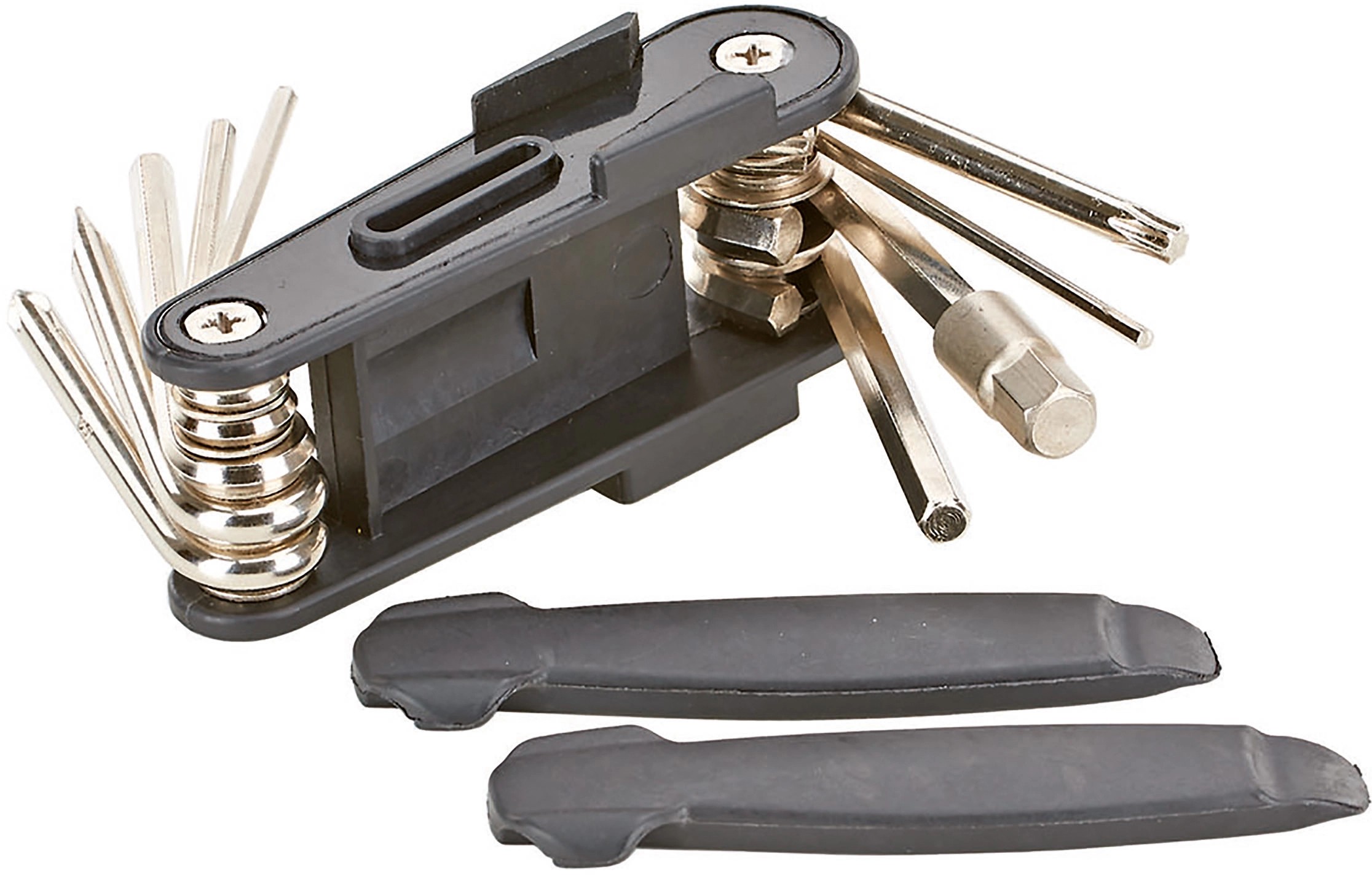 Praktické Prophete multifunkční nářadí má 11 funkcí: montážní páka, klíč na vnitřní šestihrany: 2, 2,5, 3, 4, 5, 6, 8 mm, Torx T25, plochý šroubovák a křížový šroubovák.