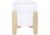Keramický květináč s dřevěným podstavcem, bílá, pr. 16 x 18 cm