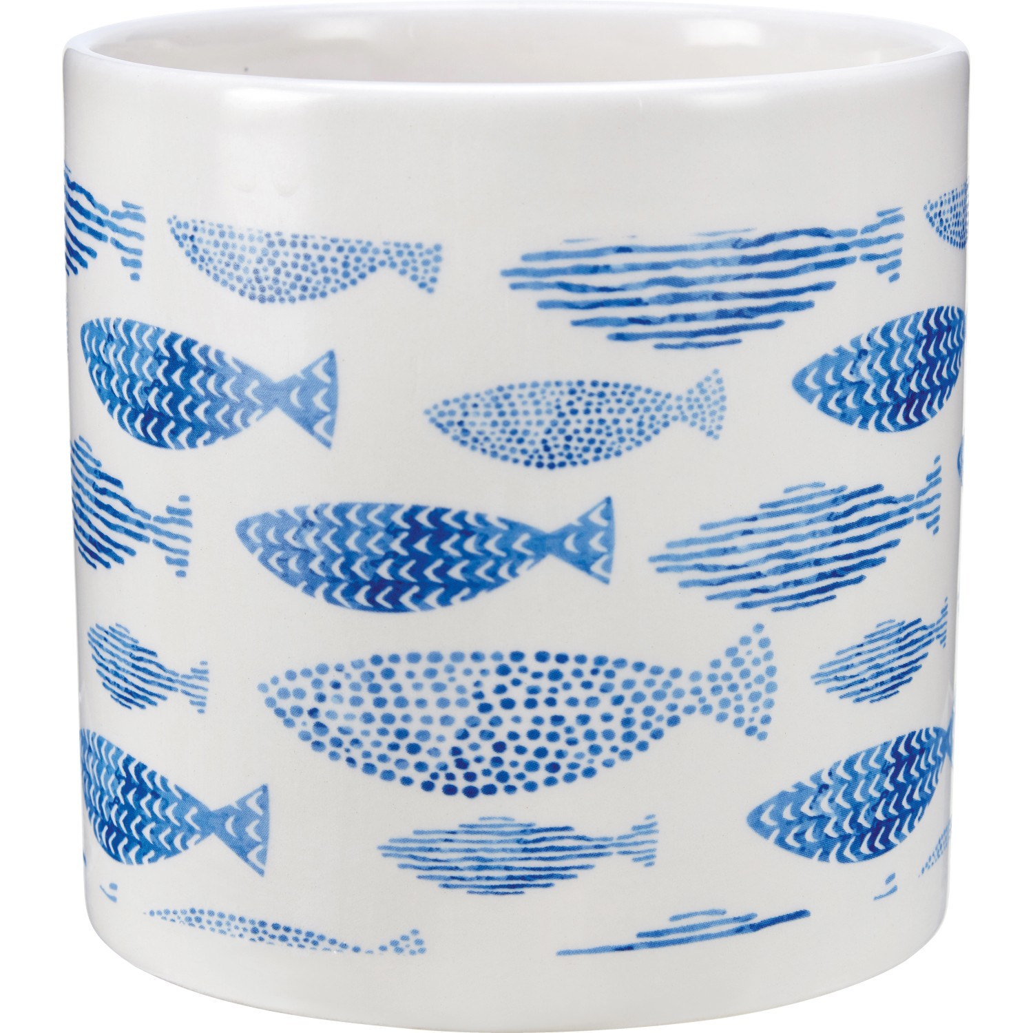 Květináč s motivem moře, ryby, bílomodrý, keramický, pr. 10,2 cm