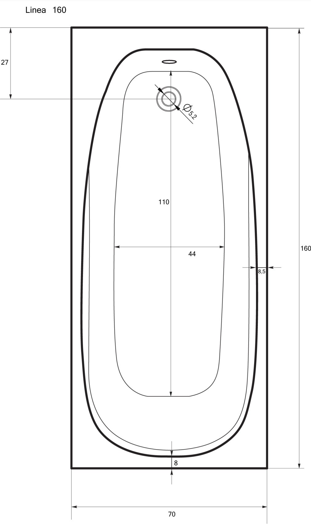 Sanotechnik Vana Linea 160, 160 x 70 x 41 cm
