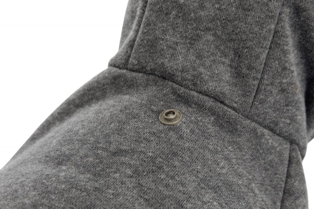 Tepláková mikina s hřejivou vnitřní stranou a kapucí. Se suchým zipem na břiše a knoflíkem pro fixaci kapuce. Možno prát v pračce na 30 stupňů.