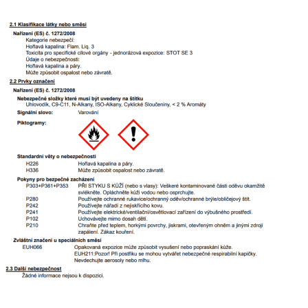 | Základní materiál: | Obsahující rozpouštědla |