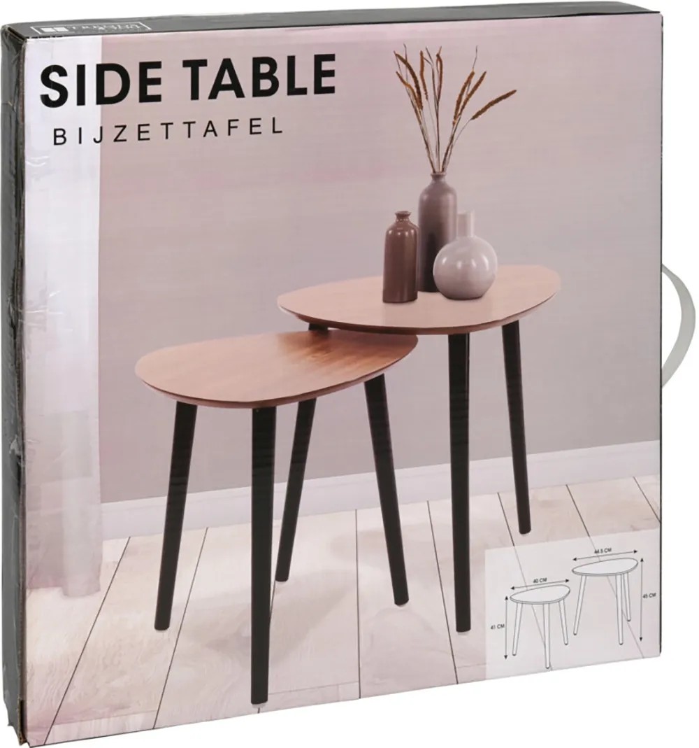 Koopman 2dílná sada odkládacích dřevěných stolků přírodní/černá