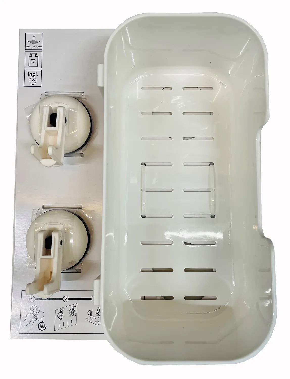 Závěsný skladovací košík z kvalitního plastu ABS o rozměru 25,1 x 13,6 x 16,4 cm. Nosnost 2 kg. Včetně přísavkového držáku pro snadnou instalaci.