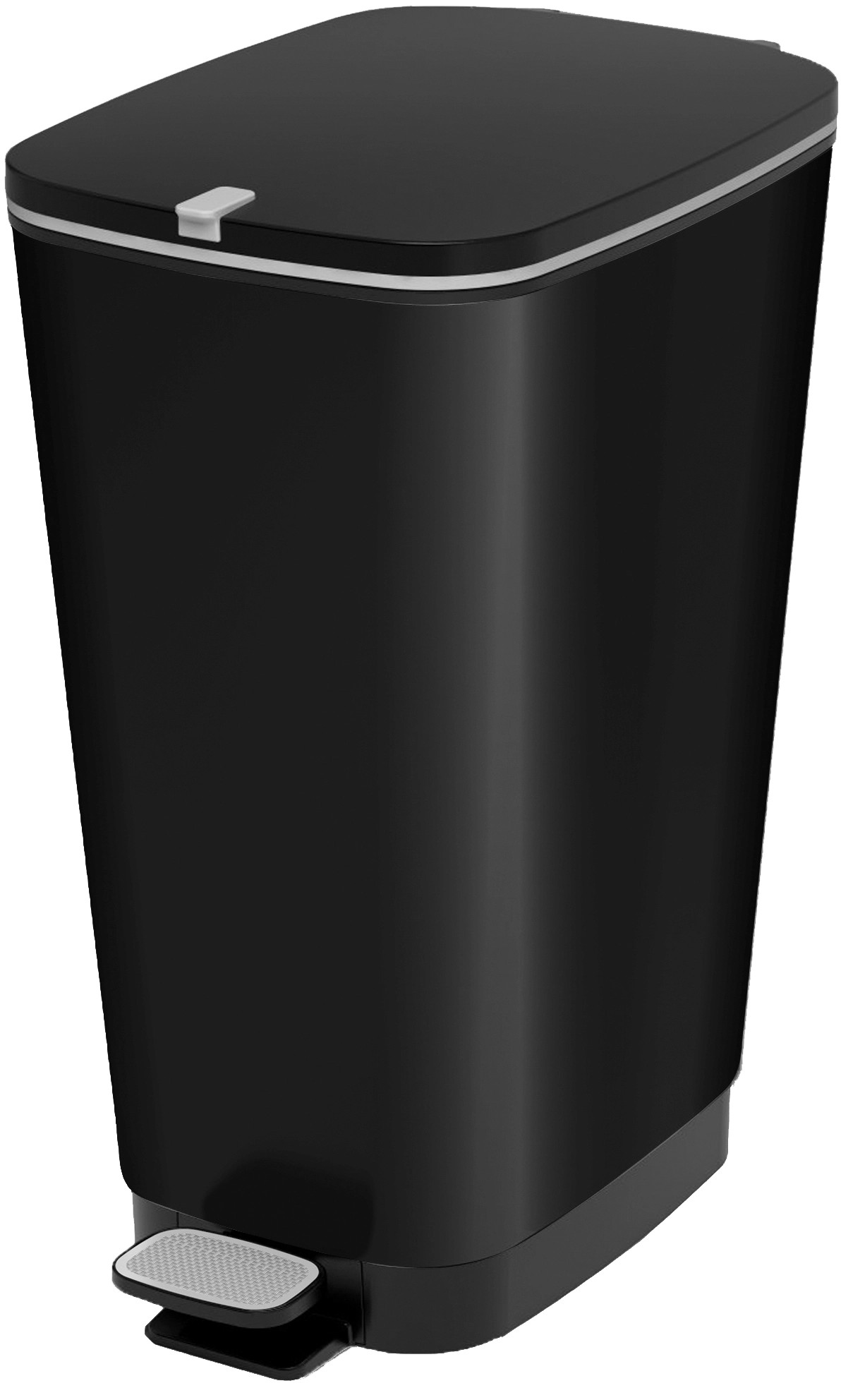Nášlapný odpadkový koš černé barvy je vyroben z plastu a je opatřen praktickým gumovým těsněním ve víku, které brání úniku zápachu. Nášlapný odpadkový koš je vybaven 4 protiskluzovými nožkami, a proto spolehlivě stojí a umožňuje nekomplikované každodenní používání. Objem: 25 l.