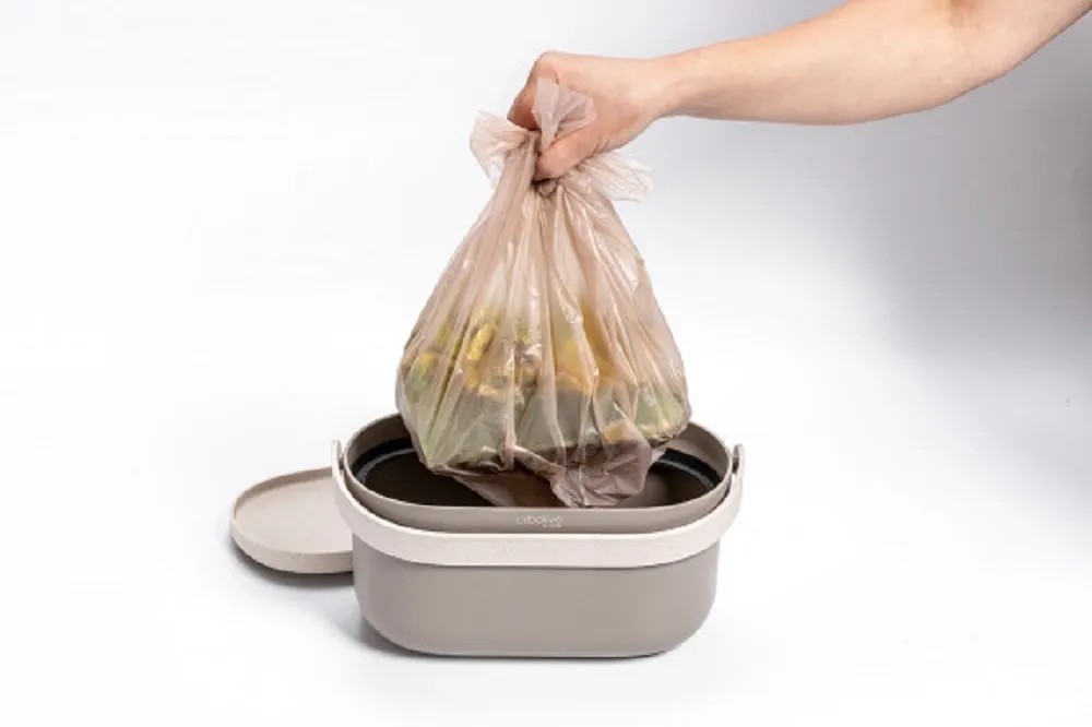 Součástí této sady jsou rozložitelné sáčky, ve kterých lze v nádobě uchovávat bioodpad po dobu max. 3 dní. Nevyužité sáčky skladujte v suchu max. po dobu 12 měsíců, poté dochází k jejich rozkladu.
