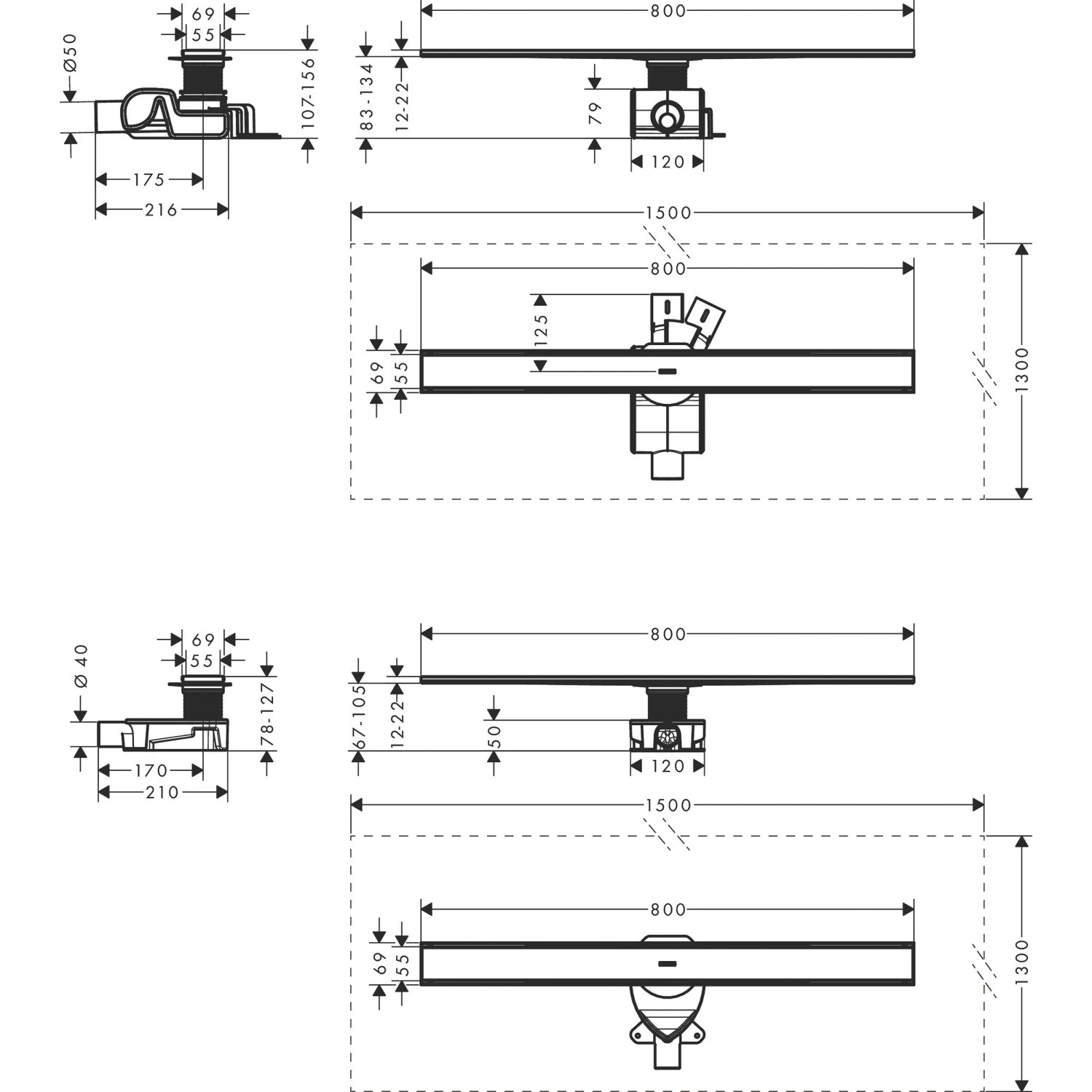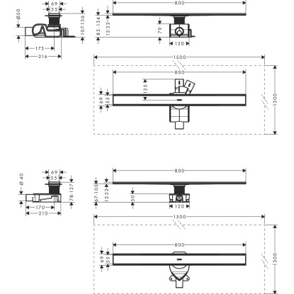 Kompletní sada sprchového žlabu Hansgrohe RainDrain Allround pro standardní/ plochou instalaci: