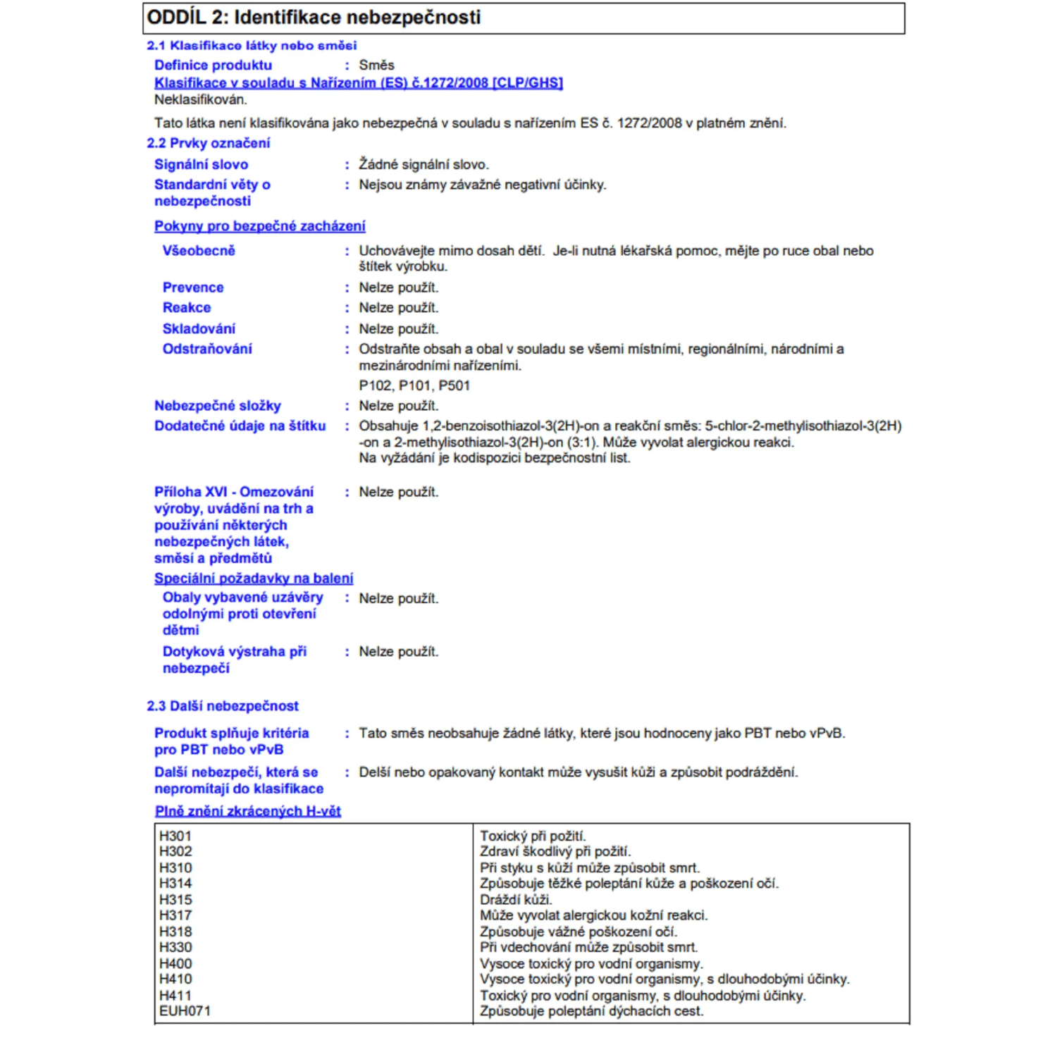 | Vhodné na dětské hračky (DIN EN 71-3): | Vhodné pro dětské hračky |