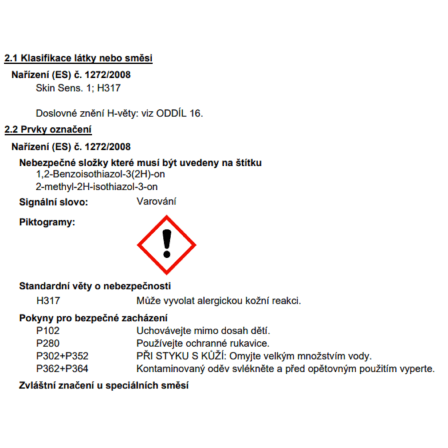 | Vhodné pro alergiky na isothiazolinon: | Nevhodné |
