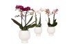 Orchidej (Phalaenopsis) v květináči Scandic White, různé barvy, pr. kv. cca 9 cm