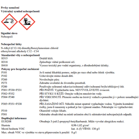 POUŽÍVEJTE BIOCIDNÍ PŘÍPRAVKY BEZPEČNĚ. PŘED POUŽITÍM SI VŽDY PŘEČTĚTE ÚDAJE NA OBALU A PŘIPOJENÉ INFORMACE O PŘÍPRAVKU.