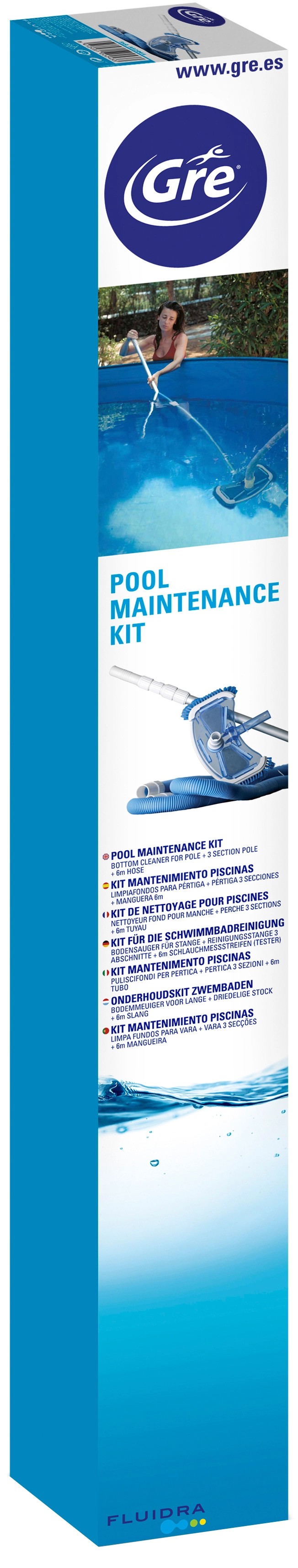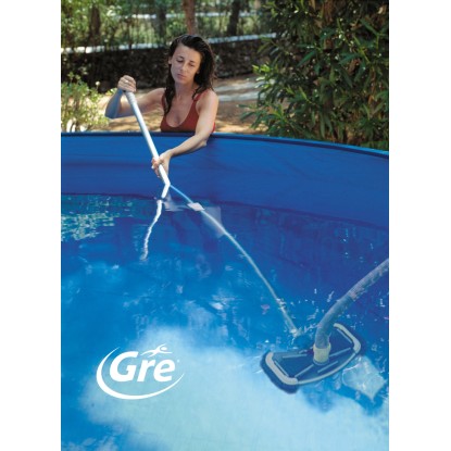 Sada na čištění dna bazénu značky Gre obsahuje hlavici pro čištění dna, hadici o délce 6 m a hliníkovou teleskopickou tyč. Díly hadice lze vzájemně propojit, aby byla delší nebo kratší. Nejsou zapotřebí žádné další kabely a sada se snadno používá.