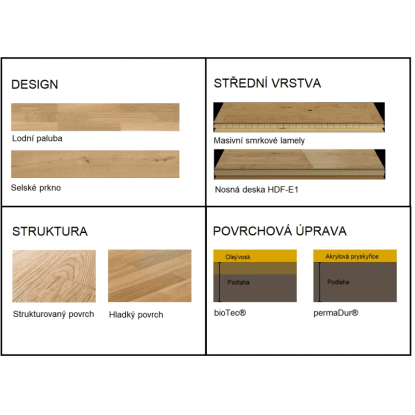 Konstrukce - masivní smrkové lamely / nosná deska HDF-E1