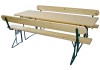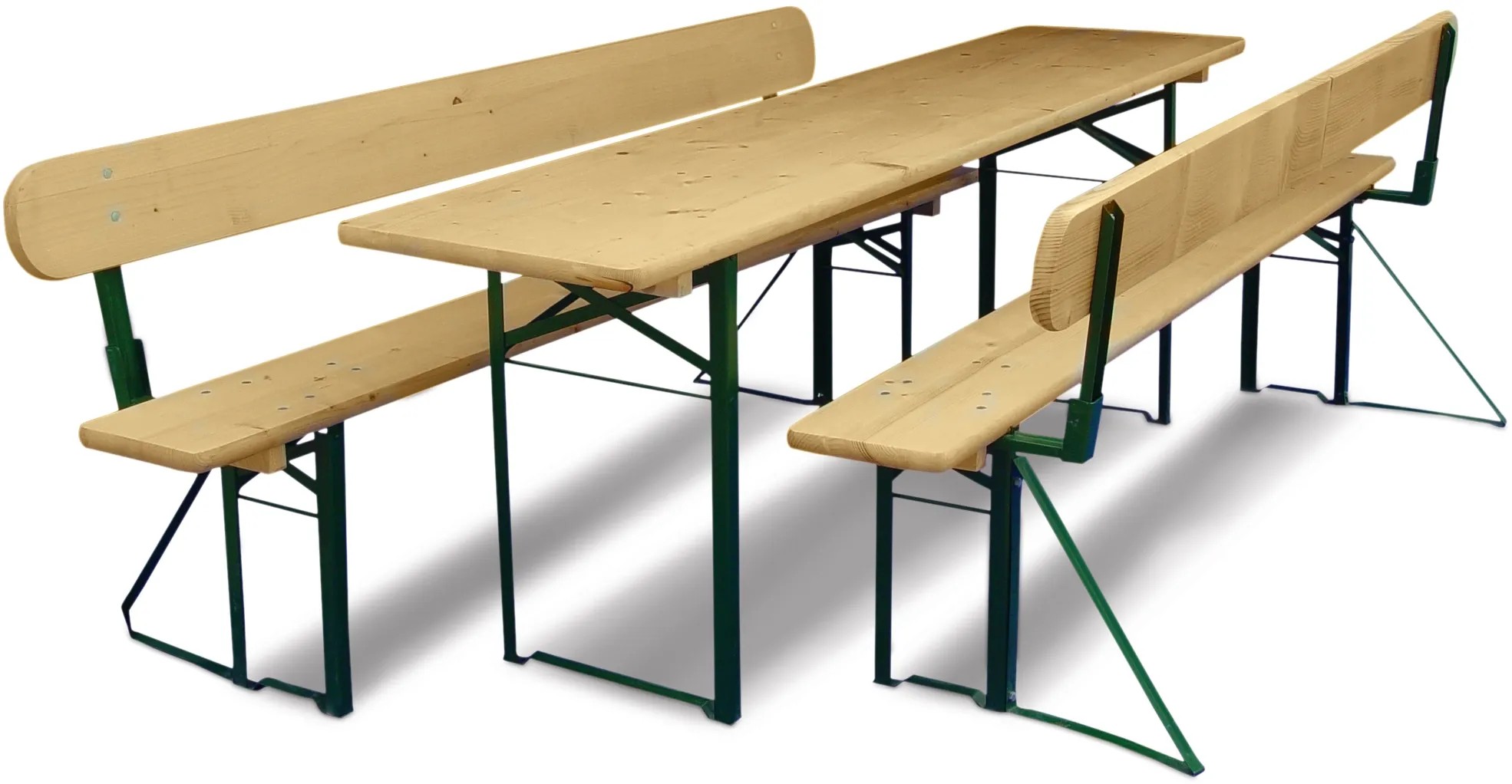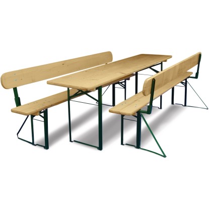 Pivní set se sklápěcí zádovou opěrkou kombinuje tradičního design a funkčnost. Borovicové dřevo je oboustranně lakované a chráněné před povětrnostními vlivy. Konstrukce je z práškově lakované oceli v zelené barvě.