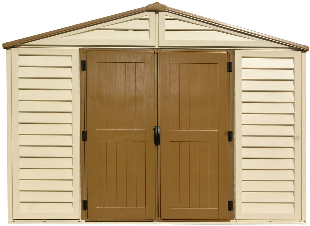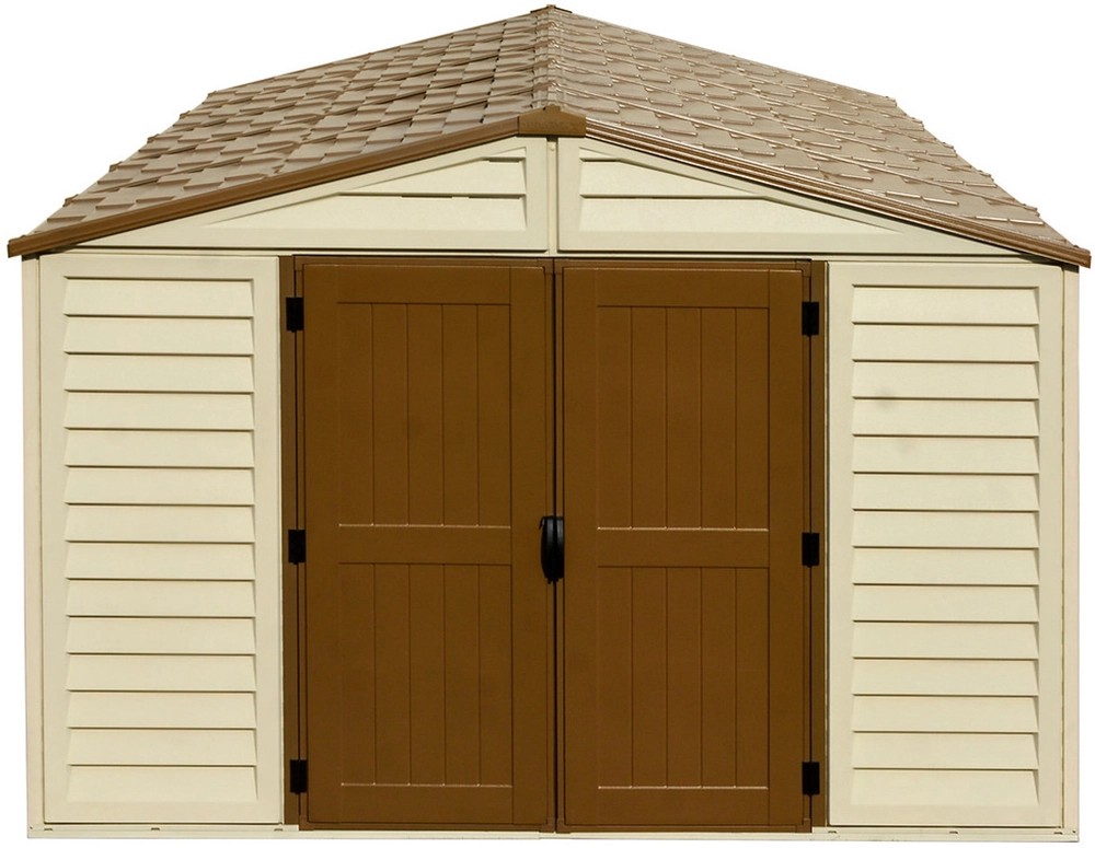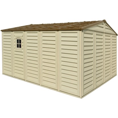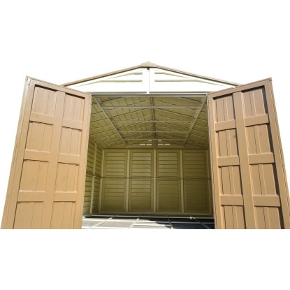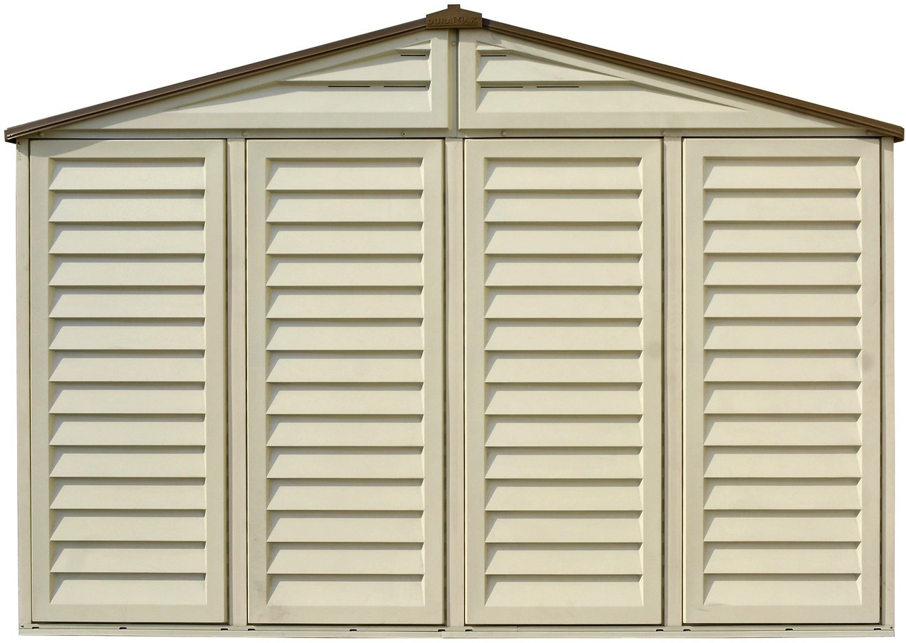 Plastové domky na nářadí Duramax se vyrábějí z bezúdržbového vinylu a pro maximální stabilitu mají ocelovou konstrukci vyztuženou ocelovými profily. Každý zahradní domek se dodává včetně základnového rámu. Plastový zahradní domek Duramax WoodBridge zaujme svým moderním designem. Velký dveřní otvor s dvojitými dveřmi zajišťuje pohodlný vstup.