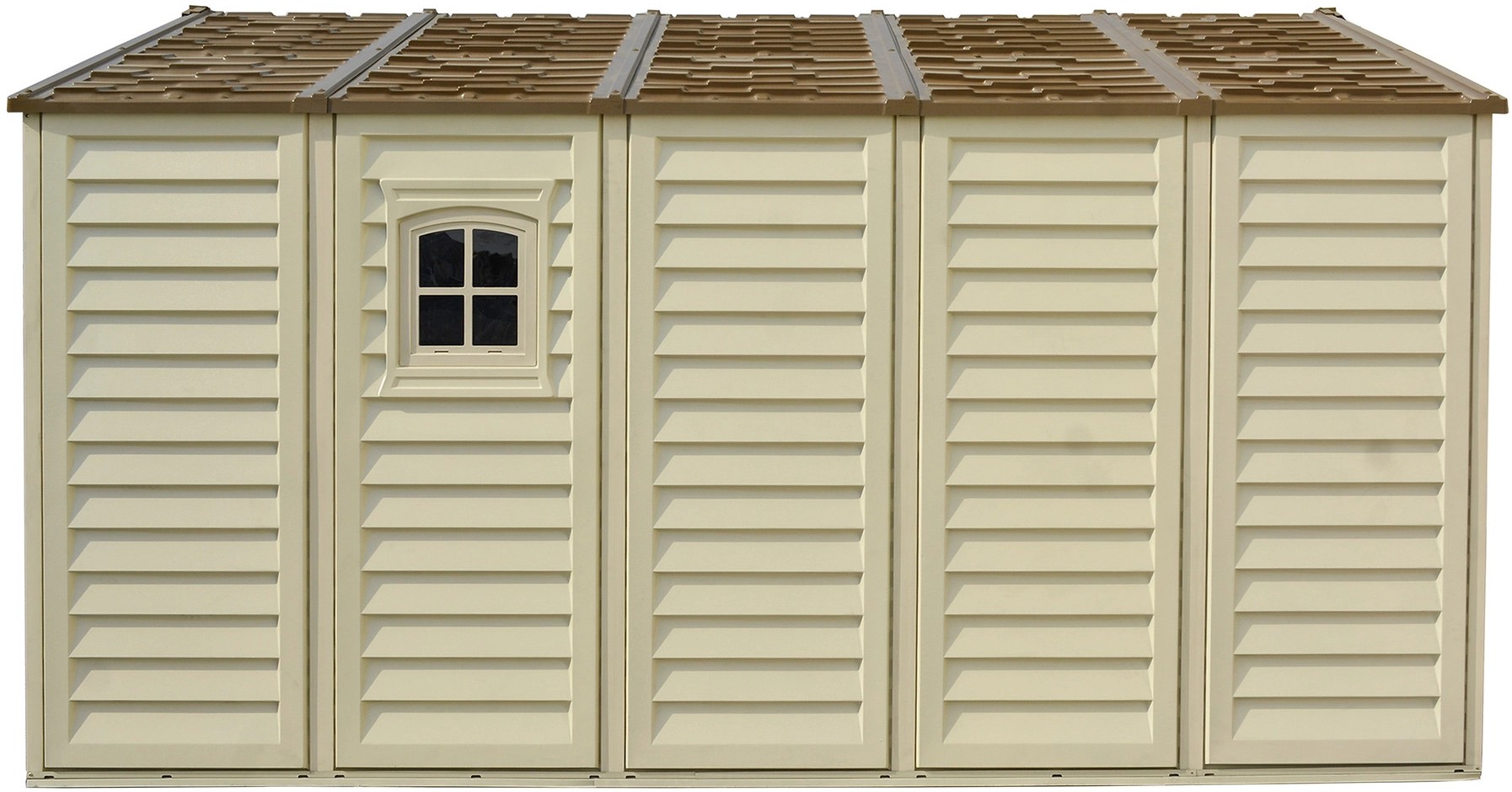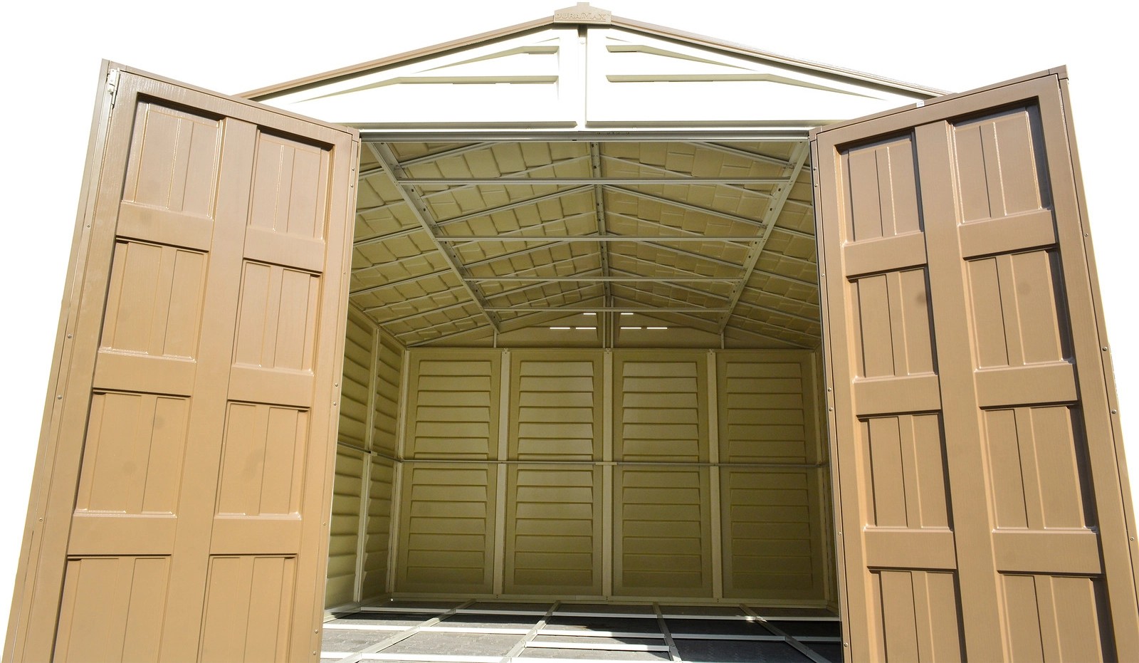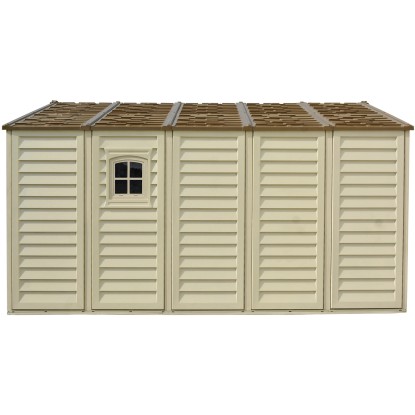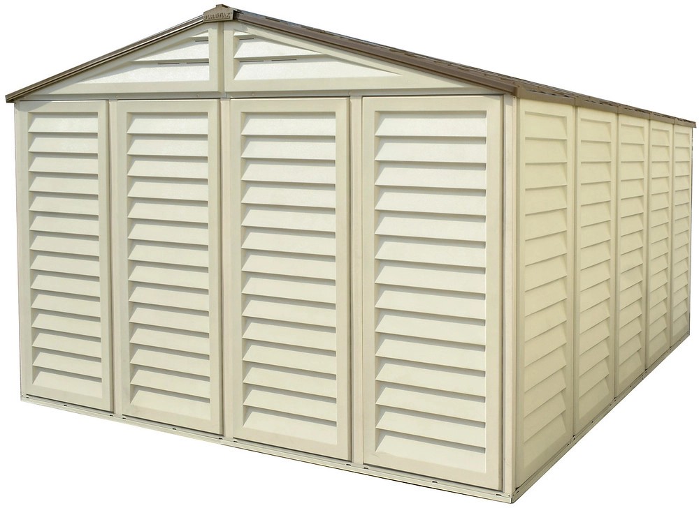 Plastové domky na nářadí Duramax se vyrábějí z bezúdržbového vinylu a pro maximální stabilitu mají ocelovou konstrukci vyztuženou ocelovými profily. Každý zahradní domek se dodává včetně základnového rámu. Plastový zahradní domek Duramax WoodBridge zaujme svým moderním designem. Velký dveřní otvor s dvojitými dveřmi zajišťuje pohodlný vstup.
