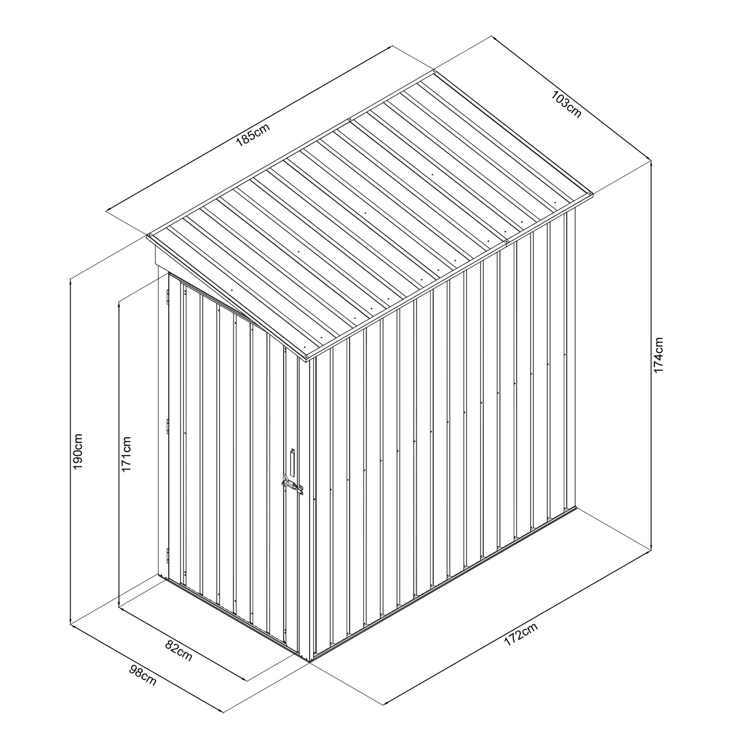 Úzký domek na nářadí ke zdi v klasickém designu se šikmou střechou představuje řešení problému, pokud máte na své zahradě, terase či balkónu málo místa. Domek je použitelný i jako volně stojící. Je ideálně vhodný pro skladování zahradního nářadí a náčiní. Má rozměr (š x h x v) 172 x 103 x 190 cm, jednokřídlé dveře s rozměrem (š x v) 82 x 171 cm.