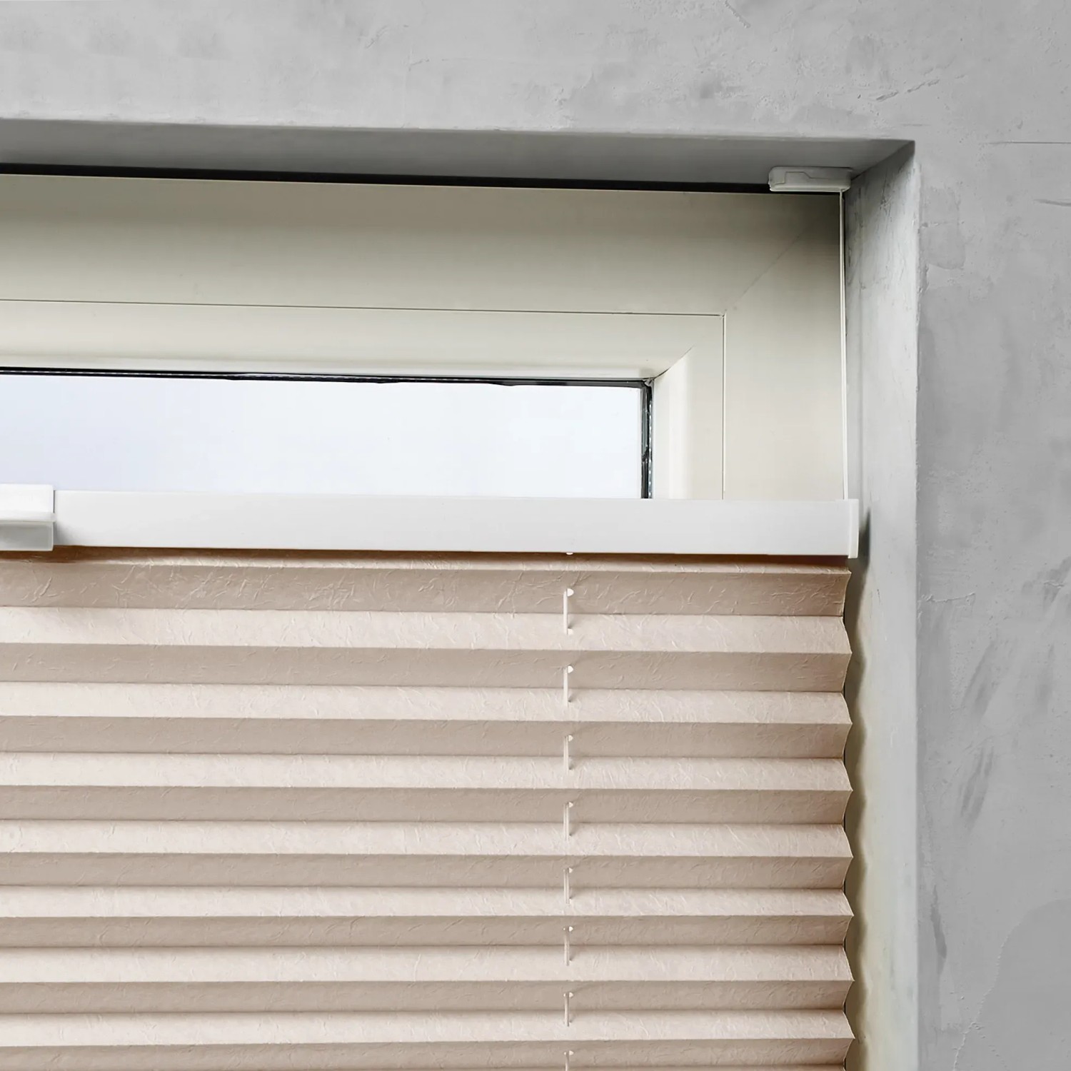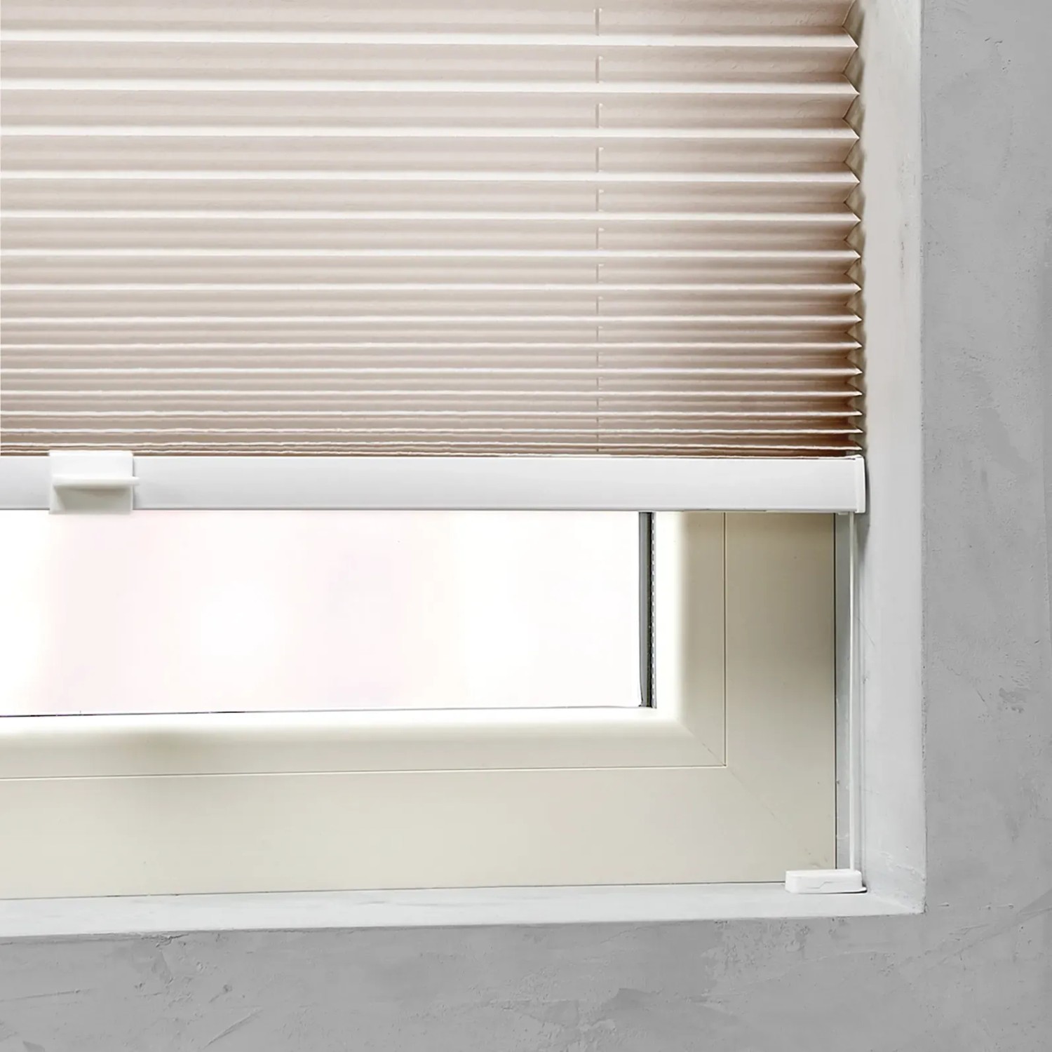 Nalepovací držáky a upínací držáky pro křídlová / výklopná okna se k této plisé roletě dodávají samostatně.