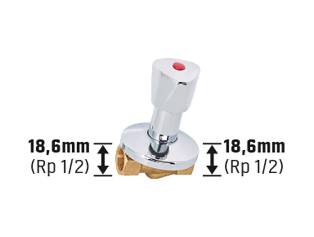 OBI podomítkový ventil se používá v sanitárních instalacích jako průchozí ventil. S jeho pomocí se dají podle potřeby zavírat a otevírat jednotlivá vodovodní potrubí. Ventil byl vyroben z korozivzdorné mosazi, jeho vršek je dekorativně, stříbrně chromovaný. Připojovací trubka se závitem má rozměr 18,6 mm (Rp 1/2). Po montáži pod omítku vyčnívá trojhranná rukojeť ze zdi, tak aby bylo se dala pohodlně ovládat. Je možné ho opatřit praktickým značkami modré nebo červené barvy, které jsou součástí balení. Součástí balení je také vhodný těsnicí kroužek pro vršek a stříbrná krycí rozeta.