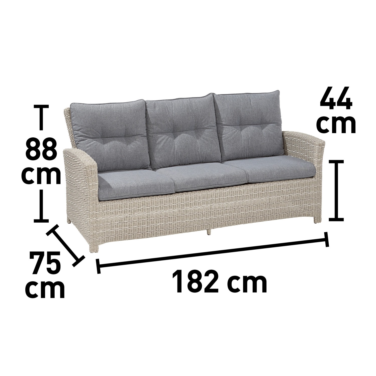 Zahradní pohovka Vermont, 3místná, polyratan, Cloud Fossil, 88 x 75 x 182 cm