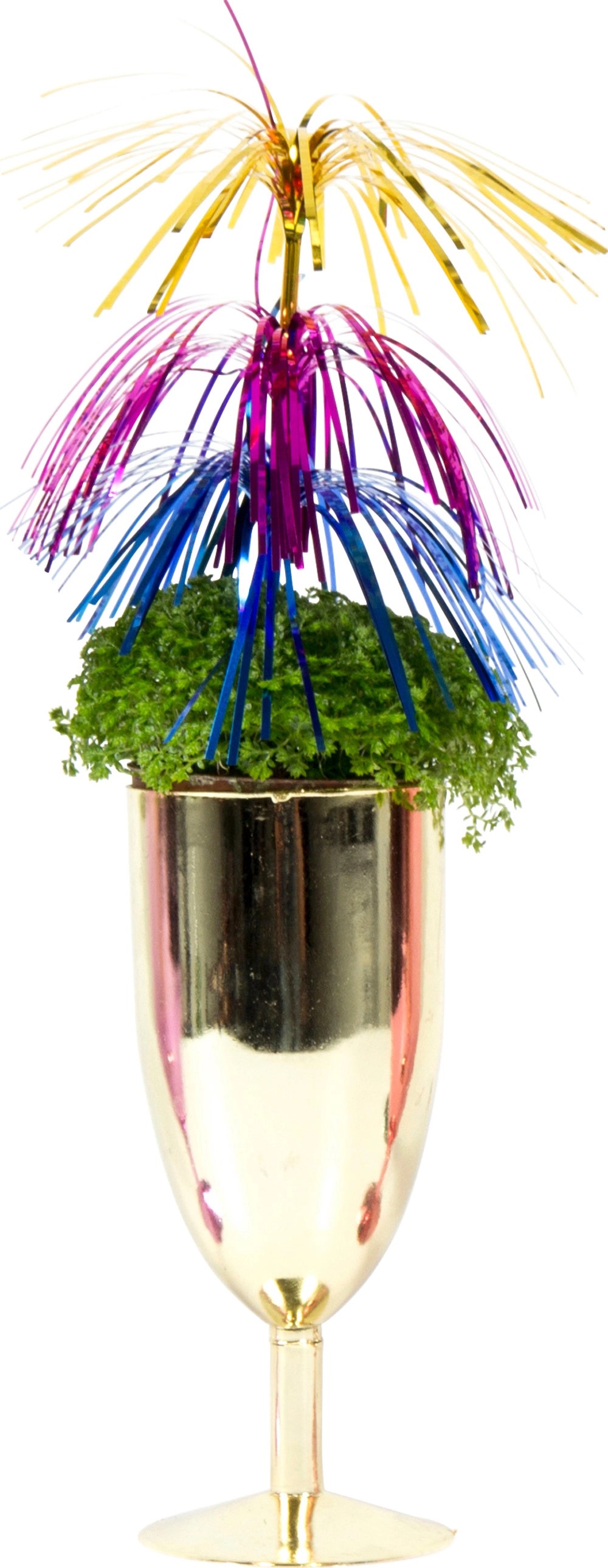 Vraneček (Selanginella) je k dostání ve sklenkách na sekt v různých barvách s dekorativním zápichem ve stylu oslavy. Vraneček je velmi nenáročná pokojová rostlina se zelenými listy. Nejraději má vysokou vlhkost vzduchu a světlé stanoviště bez přímého slunce. Při pravidelné zálivce poskytuje dlouhodobé potěšení.