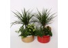 Toto vánoční aranžmá tvoří červená nebo zlatá keramika osázená dracénou (Dracaena marginata), kolopejkou (Kalanchoe bossfeldiana) a kapradím. Tuto kreaci hezky barevně doplňuje barevně sladěný granulát.