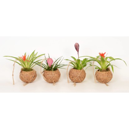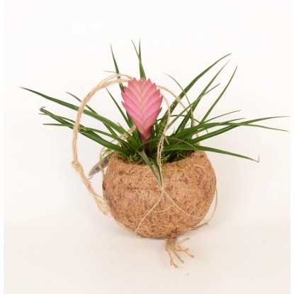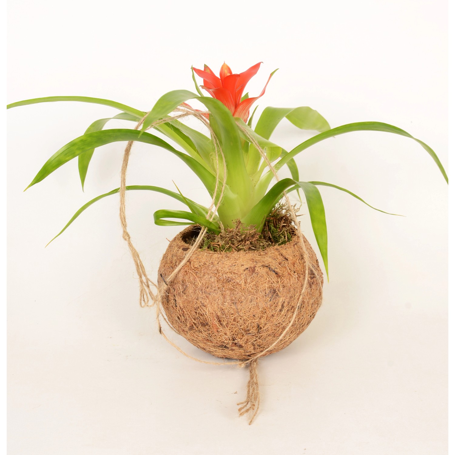 Pekný závěsný květináč osazený bromélií je vyroben ručně a má přírodní kokosová vlákna. Takzvané Kokodama působí velmi přirozeně a hodí se do jakéhokoliv obytného prostředí. Na výběr jsou různé bromélie.
