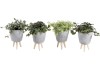 Převisle rostoucí zelené rostliny s drobnými listy se nachází v roztomilé malé keramické nádobě s nožičkami. Zelená barva podporuje relaxaci těla, mysli a duše a postará se o harmonickou domácí atmosféru. Rostliny preferují pokojovou teplotu a světlé stanoviště. Při pravidelné zálivce poskytují dlouhodobé potěšení.