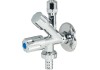 OBI ventil pro pračku umožňuje bezpečné připojení praček nebo myček nádobí. Je vhodný pro pitnou vodu a slouží k regulaci vody. Je vyroben z robustní mosazi a má chromovaný povrch, odolný vůči poškrábání. Jedná se o praktický rohový ventil. K vybavení patří dvě rukojeti pro oddělené uzavření potrubí a přívod do spotřebiče. Rukojeť je pro lepší orientaci opatřena modrým barevným označením. Ventil se namontuje na již instalovanou nástěnnou přípojku. Nástěnná přípojka má vnější závit 21 mm (R 1/2). Přípojka pro další vedení potrubí, ve formě lisovaného šroubení, má průměr 10 mm. K připojení spotřebiče slouží hadicové šroubení se závitem 26,4 mm (G 3/4). Chromovanou rozetou se zakryje místo vstupu trubky do zdi. Ventil je navíc opatřen pojistkou proti zpětnému toku. Voda tak nemůže ze spotřebiče proudit zpět do přívodu. Při dalším použití je voda ihned k dispozici.