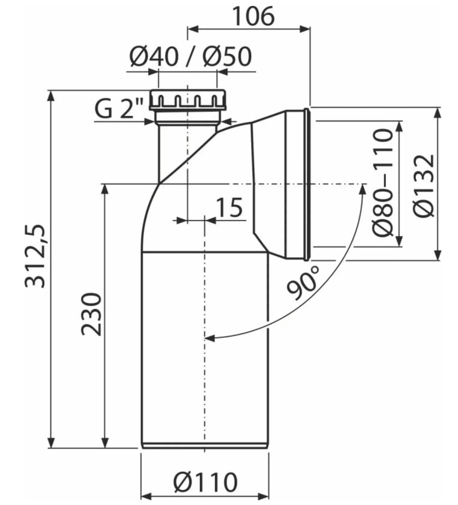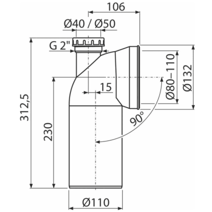 Alcadrain Dopojení k WC s připojením DN40/50 - koleno 90°