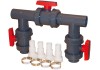 Součástí dodávky je 2 x T-ksu, 3 x kulový kohout, 4 x hadicová spona, 4 x nátrubek.