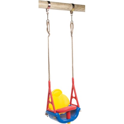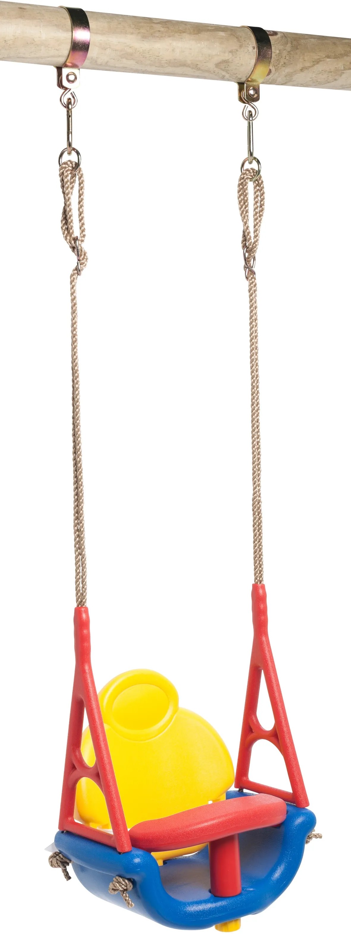 Houpačka SwingKing je ideální pro vaše miminko nebo batole. Plastová houpačka pro malé děti je nastavitelná a díky tomu roste spolu s dítětem. Výškově nastavitelná lana snadno připevníte se 2 houpačkovými háky (nejsou součástí dodávky). Rozměry (D x Š x V): 38 x 24 x 49 cm. Pro výšku houpačky od 1,9 m do 2,4 m. Průměr lana: 10 mm.