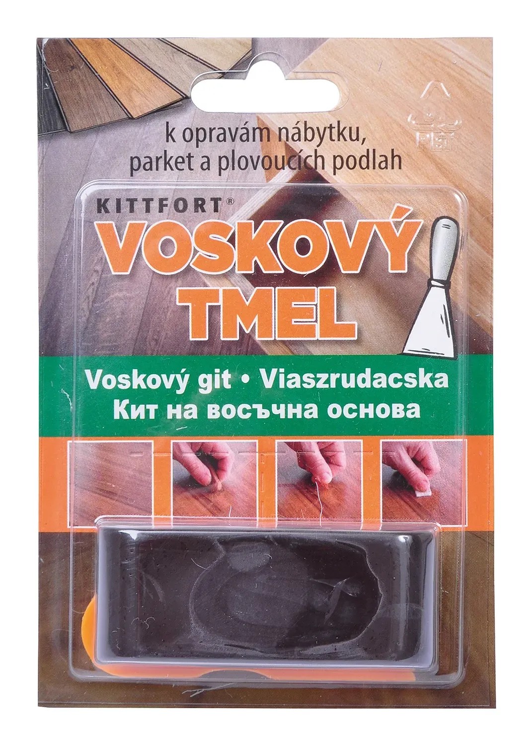 Kittfort voskový tmel Profi slouží k vyspravení a retušování rýh a drobných škrábanců v plovoucích podlahách, parketách, mořeném dřevě a leštěném nábytku. Tmel je po aplikaci světlostálý. Následné ošetřování opravených míst běžným způsobem. Velmi rychlá a jednoduchá oprava v interiéru i exteriéru.