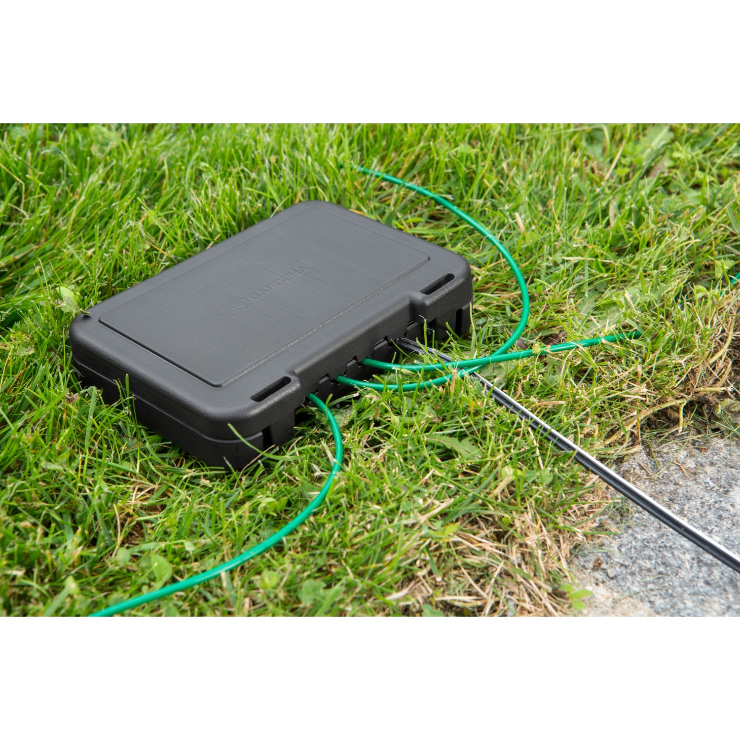 Gardena chránič kabelové zásuvky chrání kabely a přípojky, když se robotická sekačka v zimních měsících nepoužívá a je uskladněná i nabíjecí stanice. Přípojky a kabely se jednoduše přivedou do plastového boxu a potom nemůže dojít k jejich poškození deštěm a sněhem.