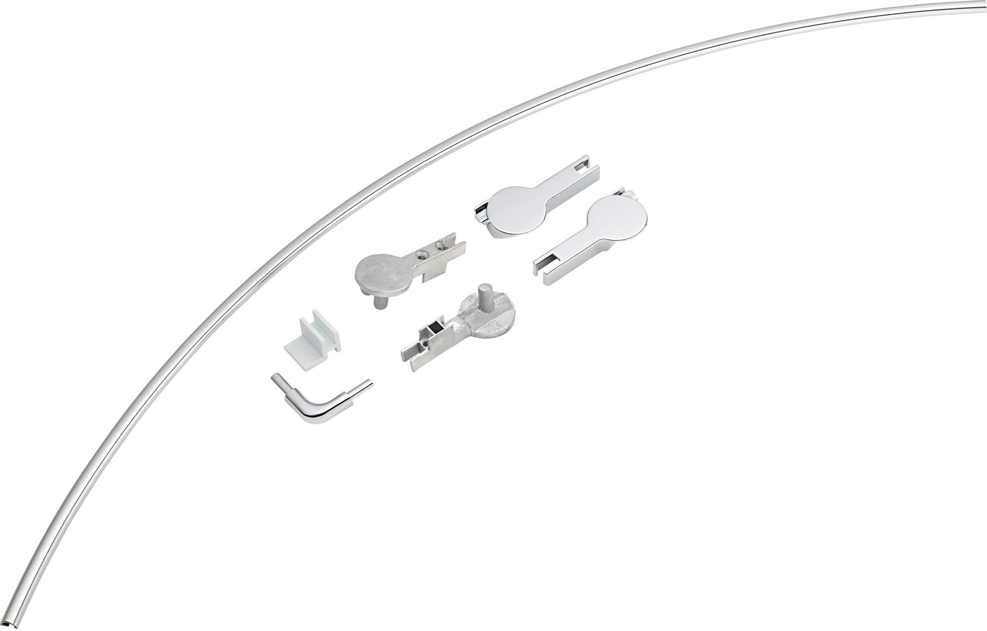 Sada podlahového upevnění slouží k montáži a utěsnění kruhové sprchy Pelmo na podlahu a skládá se z potřebných krytek závěsu, profilů pro odvod vody a montážní pomůcky.