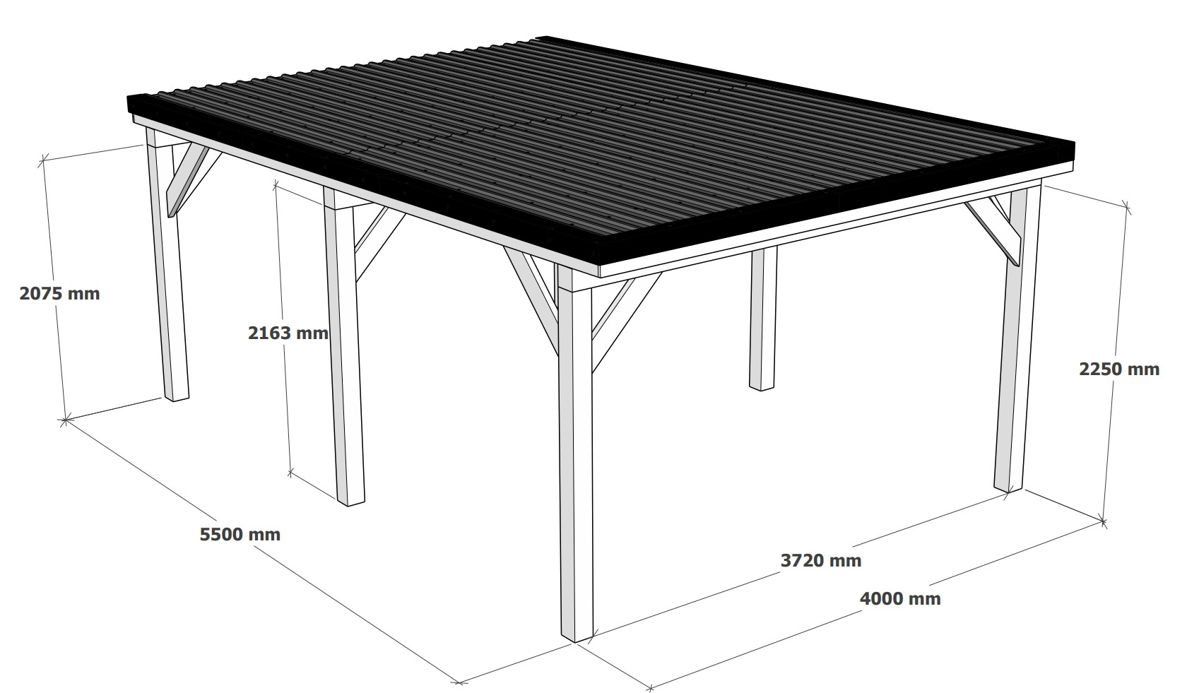 Holzbrüder Přístřešek na auto Ralf bílý/černá stř. 400 x 600 cm 24 m2