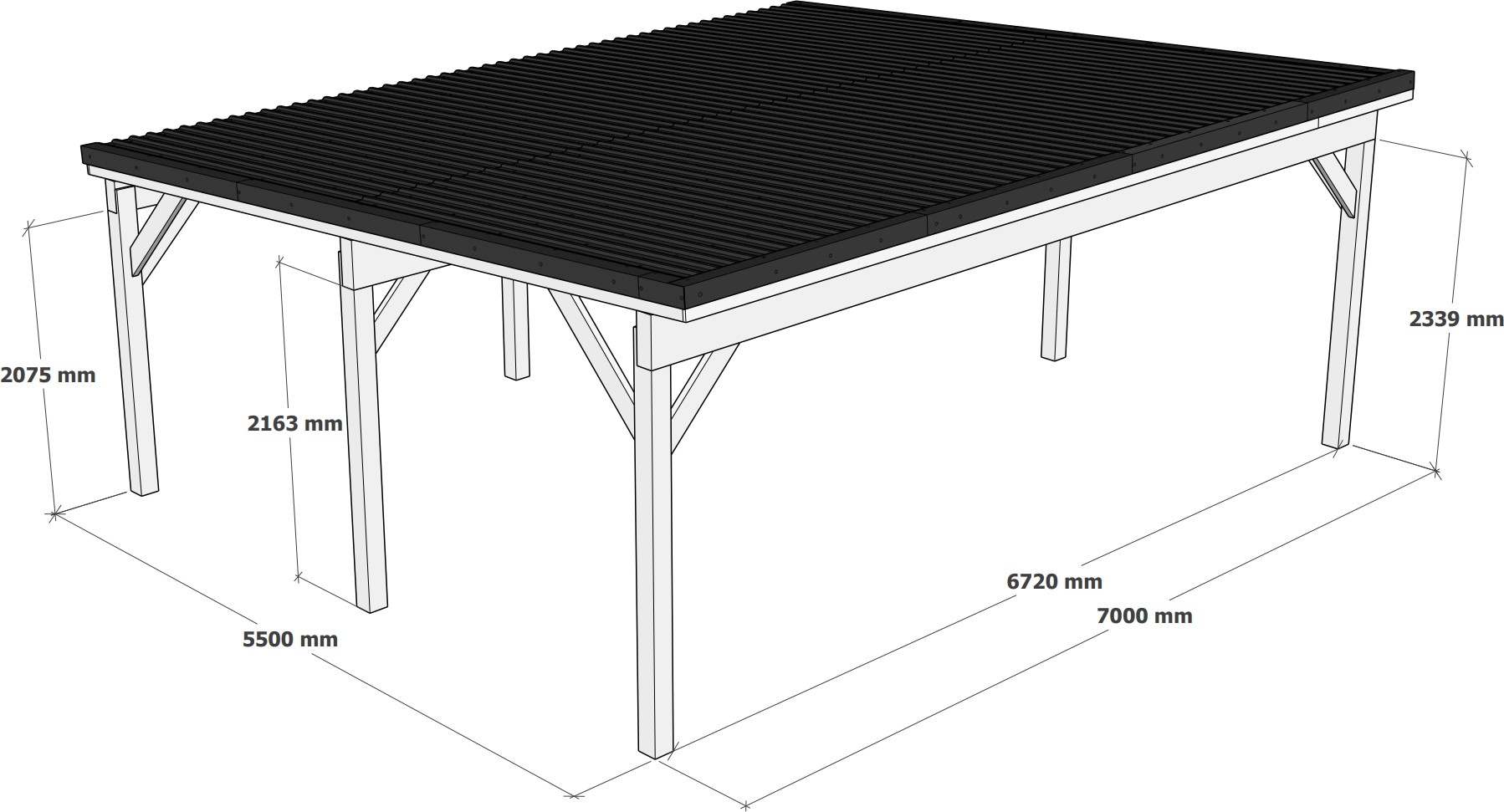 Díky speciální konstrukci a střešním nosníkům, je dosaženo extrémně vysokého zatížení sněhem až 250 kg/m2. Jako střešní krytina je použit vysoce kvalitní trapézový plech T20 ze speciální stavební oceli S280GD, která je potažena zinkovou vrstvou nejméně 275 g/m2 a neobsahuje škodlivé těžké kovy a karcinogenní látky.