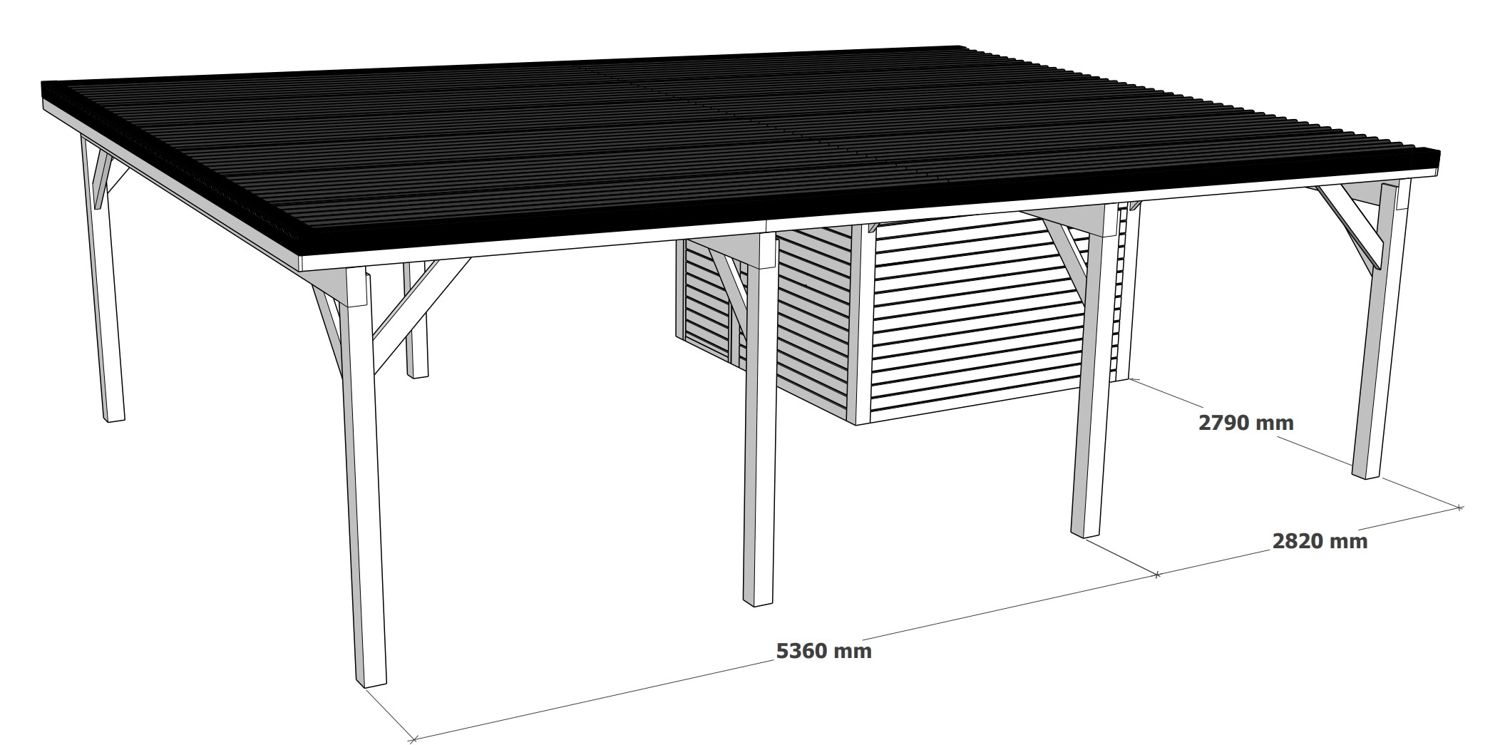 Holzbrüder Přístřešek na auto Ralf+malý domek bílý/hnědá 600 x 868cm 52m2