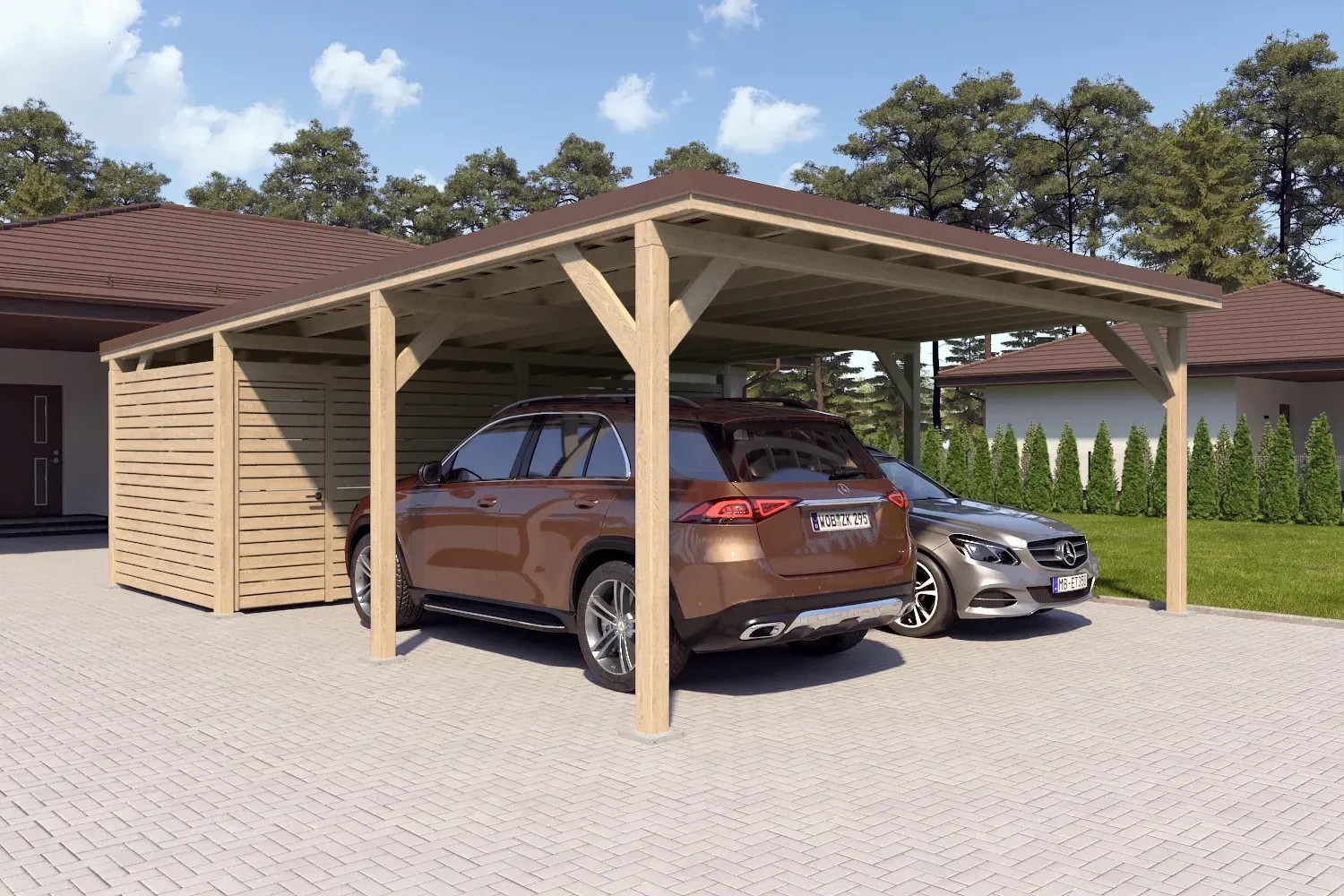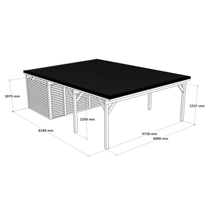Holzbrüder Přístřešek na auto Ralf+velký domek impregn./hnědá 600 x 868cm 52m2