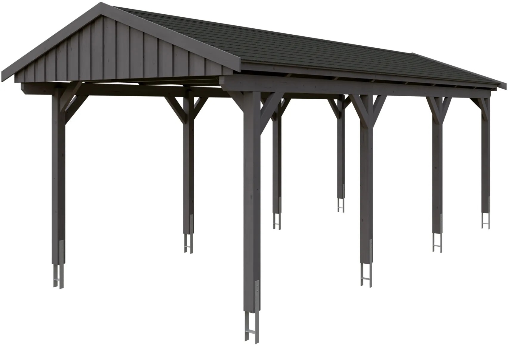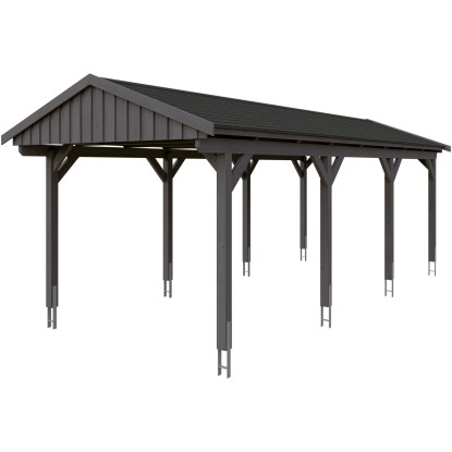 Skan Holz Přístřešek na auto Fichtelberg břid. šedý, černé šindele 317 x 808 cm